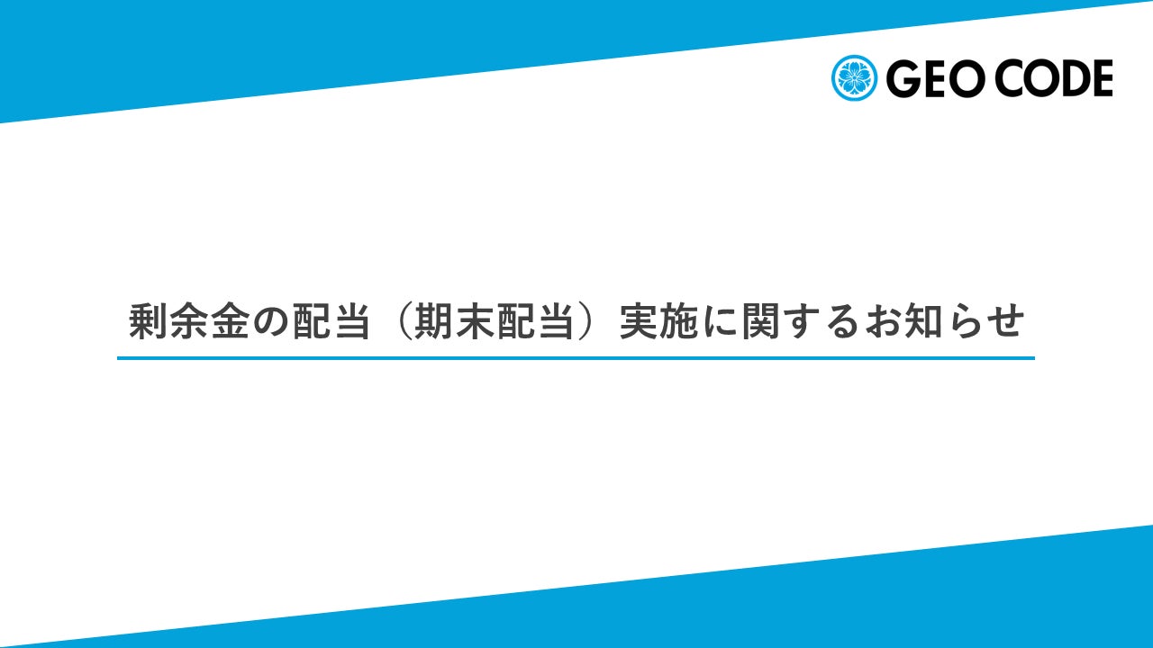 ジオコードは、株主の皆様に対する利益還元を経営の重要課題と認識しており、持続的な事業の拡大と経営基盤の確立のための内部留保の充実に配慮しつつ、業績・財務状況及び事業環境等を総合的に勘案し、安定的かつ継続的な配当を維持することを基本方針としております。