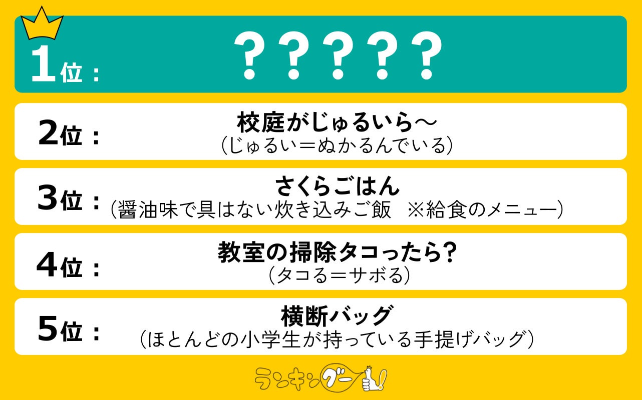 ランキングー!では静岡の方言【学校編】をピックアップし、ランキングを調査。全年代の男女(性別回答しないを含む)9,202名にアンケートを行い、TOP10を決定しました。ここではTOP5をご紹介します。