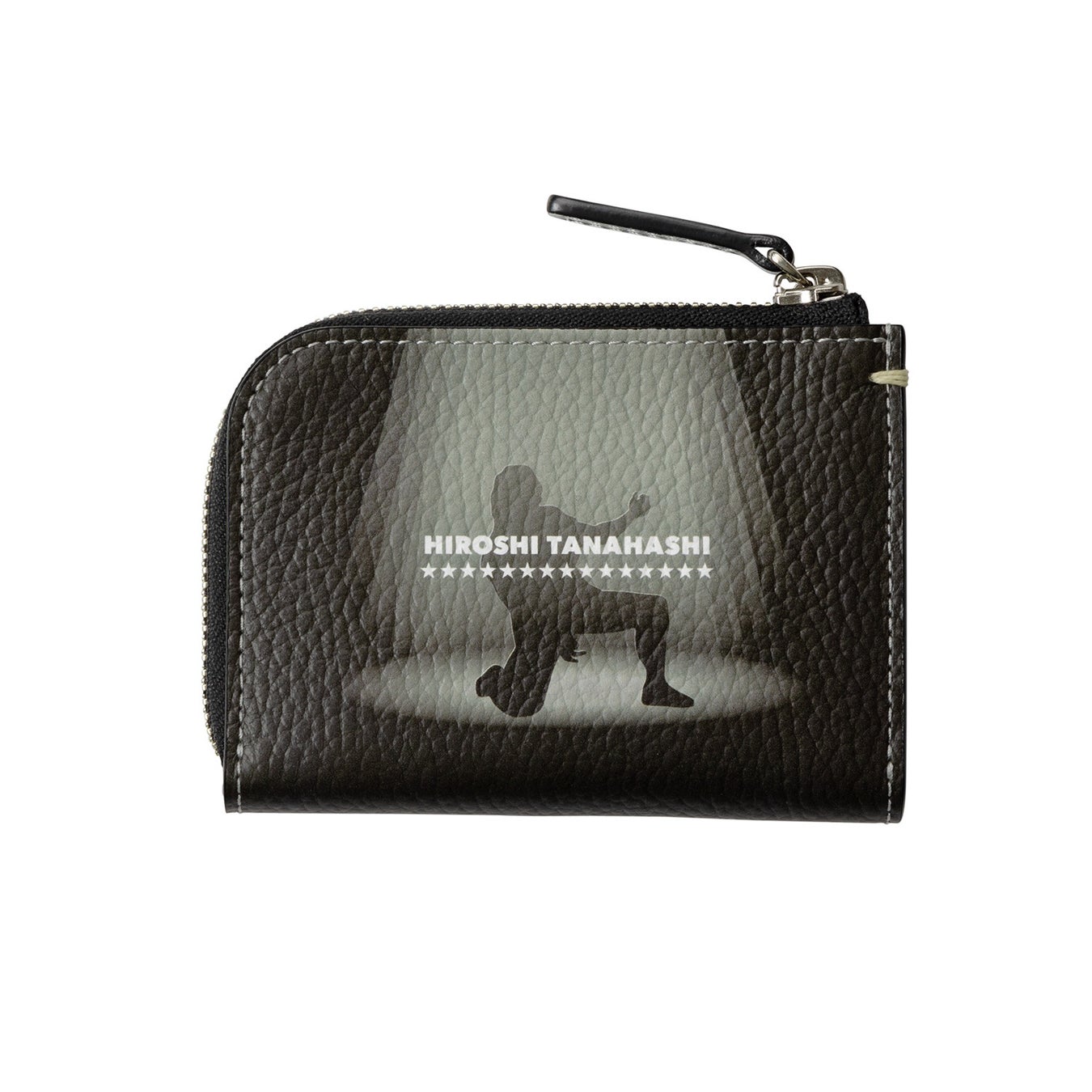 表面には、棚橋弘至選手の象徴的なポーズに、同選手のキャッチコピーを添えてトリコロールでデザイン。背面には、エアギターを奏でる棚橋弘至選手のシルエットのグラフィックをプリントしました。素材は、型押しした「プリントシュリンクレザー」を使用して奥行きのある表情で仕立て、特徴的なデザインを引き立たせるために、ファスナーや金具にはシルバー色を採用。小銭入れには、棚橋弘至選手の名言にちなんだ「NEVER TIRED」と、新日本プロレスのトレードマークである"ライオンマーク"を刻印しています。