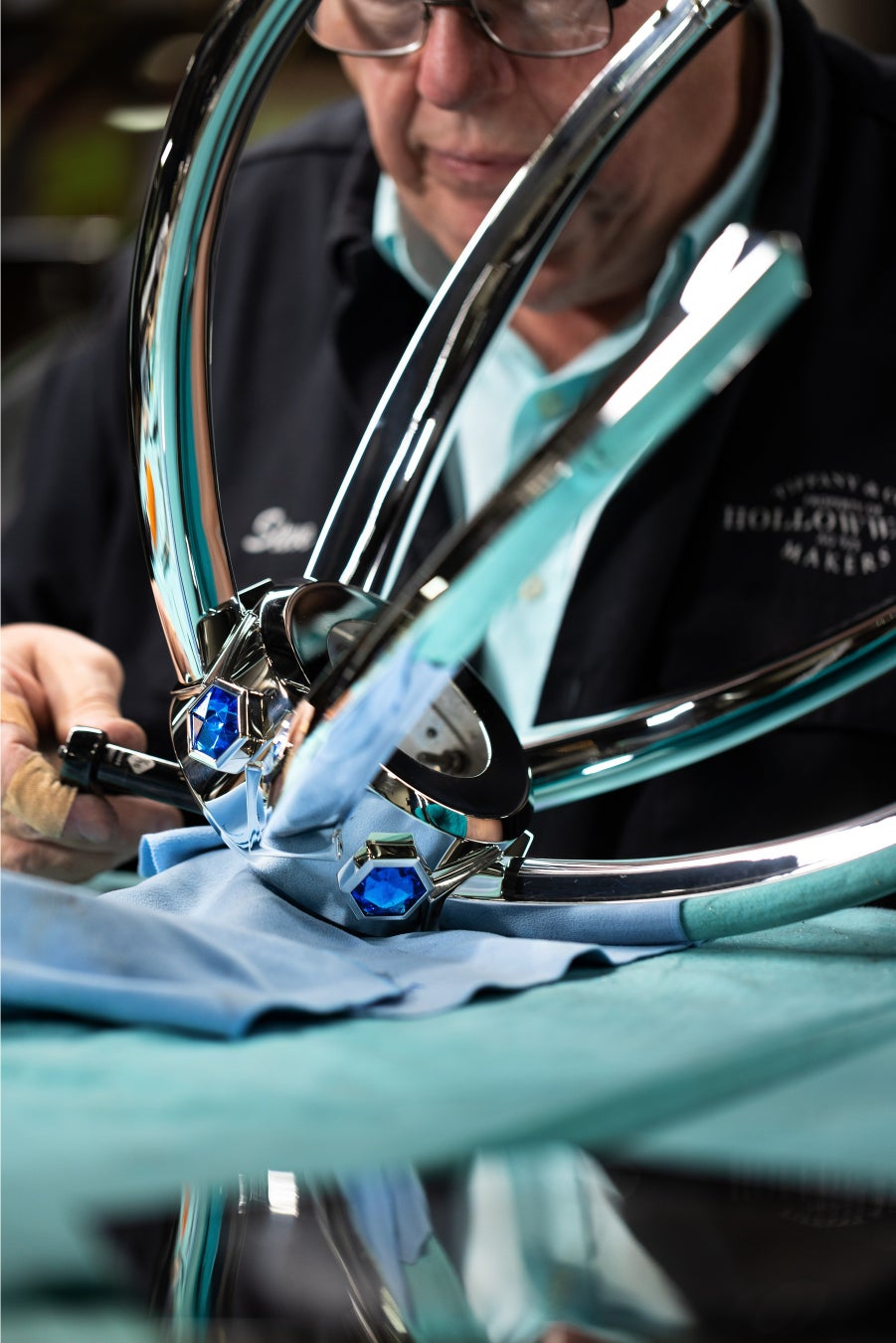 ロードアイランド州カンバーランドにあるティファニーの ホローウェア工房の熟練した職人の手作業による製作風景