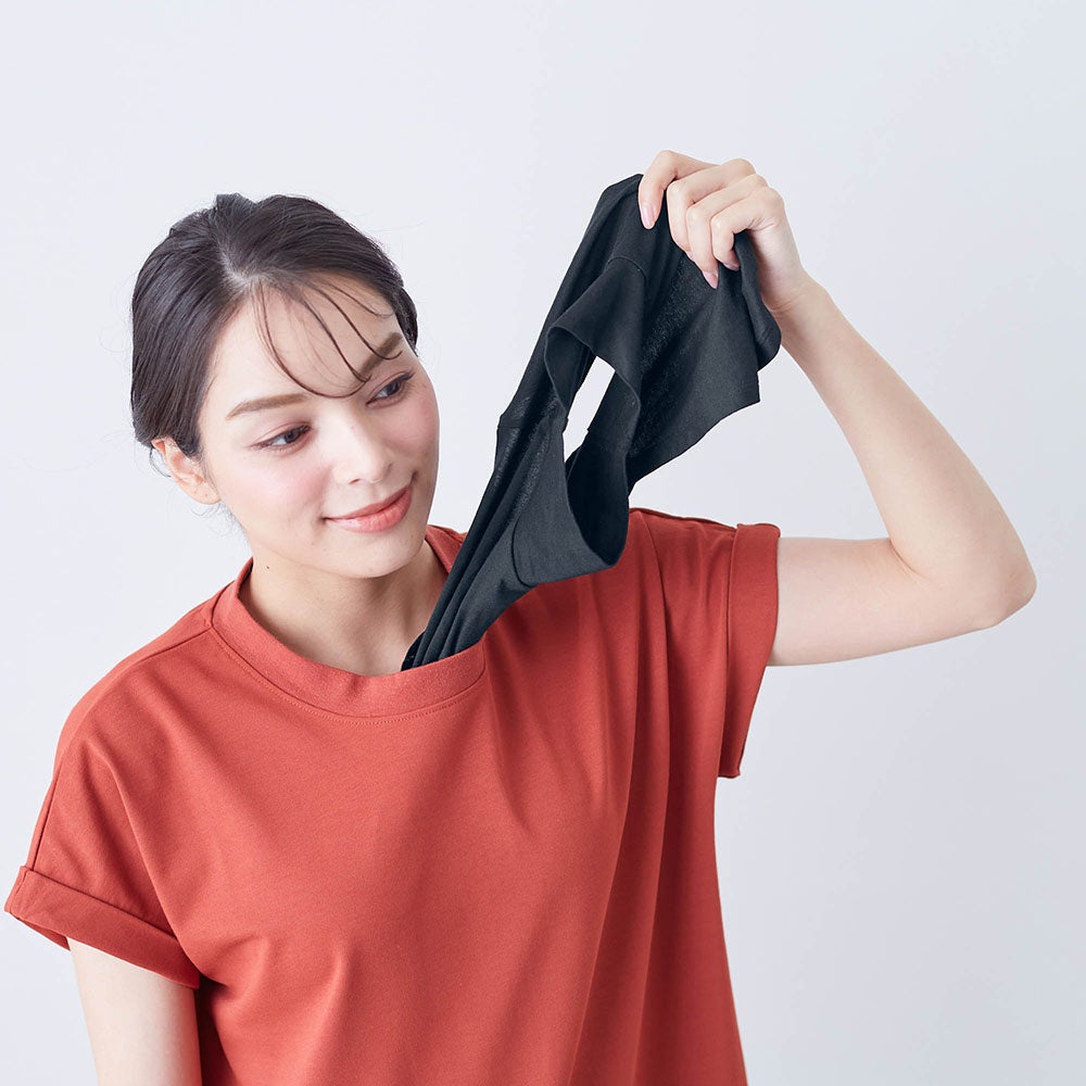 綿100%素材により、肌に触れる部分の快適性を実現しつつ、吸水速乾・消臭機能あり。 |