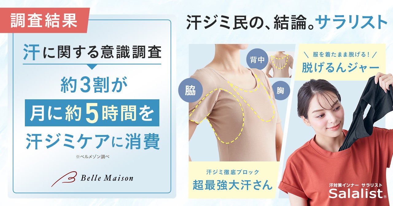 「汗に関する意識調査」をベルメゾンで実施 汗に悩む人の約半数が汗ジミの目立つ色を敬遠し、約3割が月に約5時間を汗ジミケアに費やしていると回答