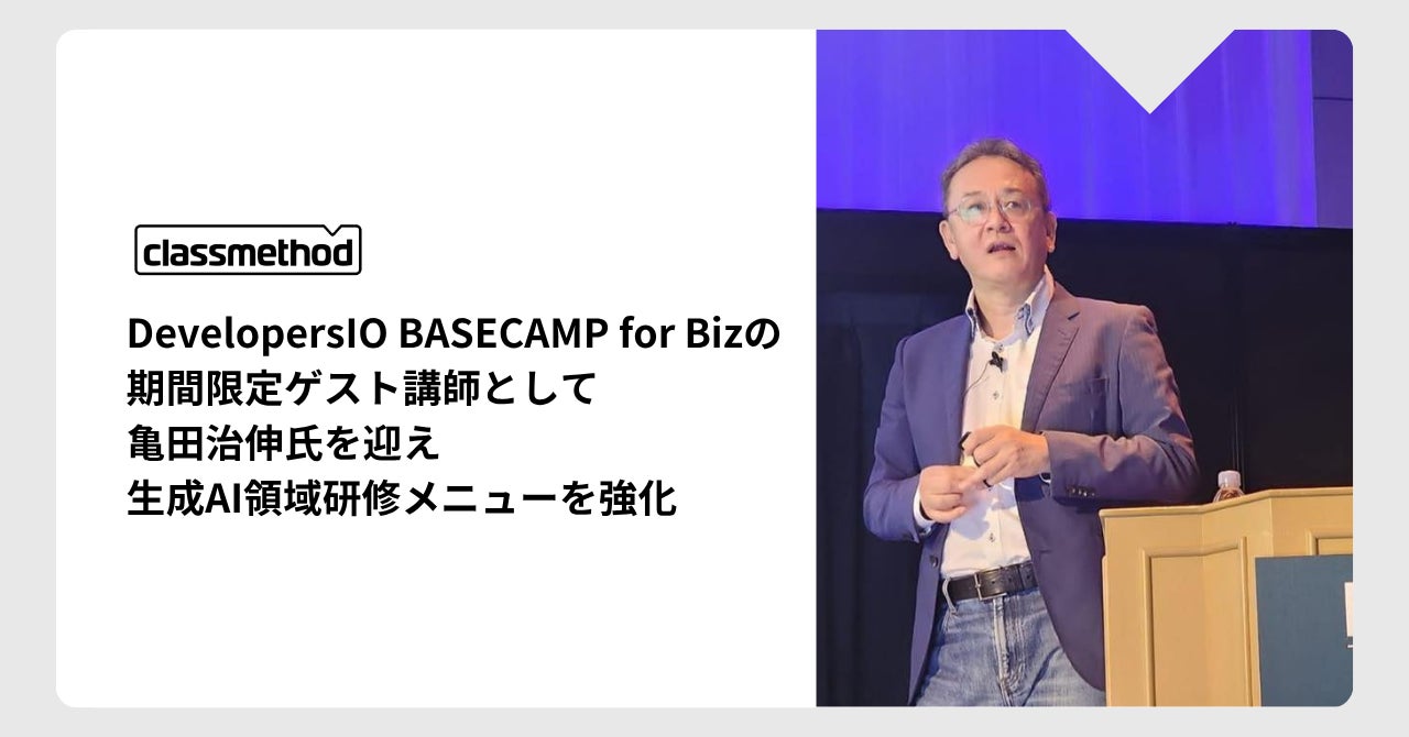 クラスメソッド、DevelopersIO BASECAMP for Bizの期間限定ゲスト講師として、クラウド界隈でエバンジェリストを歴任する亀田治伸氏を迎え生成AI領域における研修メニューを強化