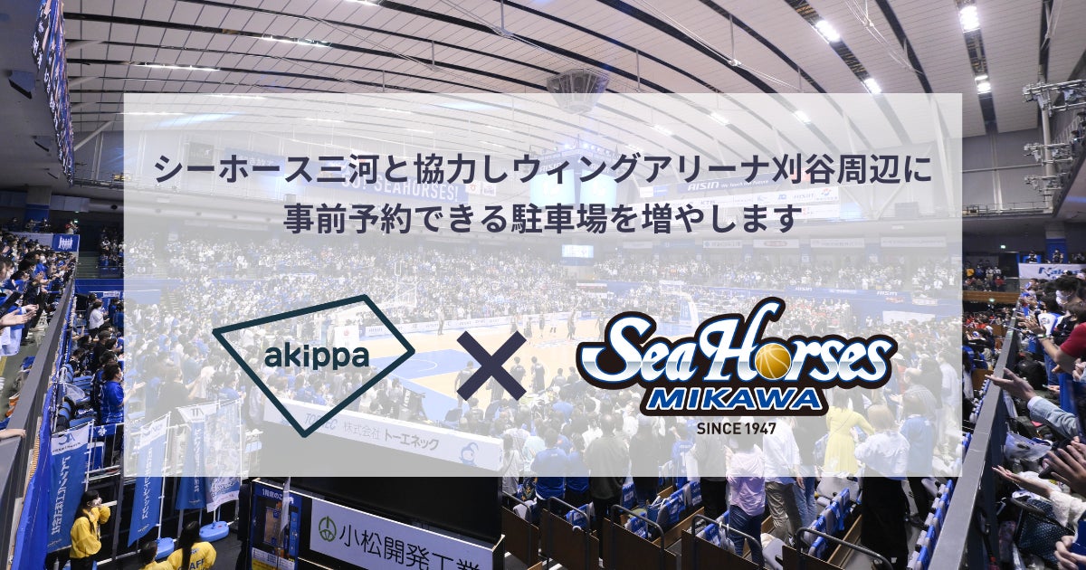 akippaがスポーツチームとの提携30チーム目となるB1・シーホース三河と提携!ウィングアリーナ刈谷周辺の駐車場開拓を開始 〜刈谷市総合運動公園のアクセス向上を目指して〜
