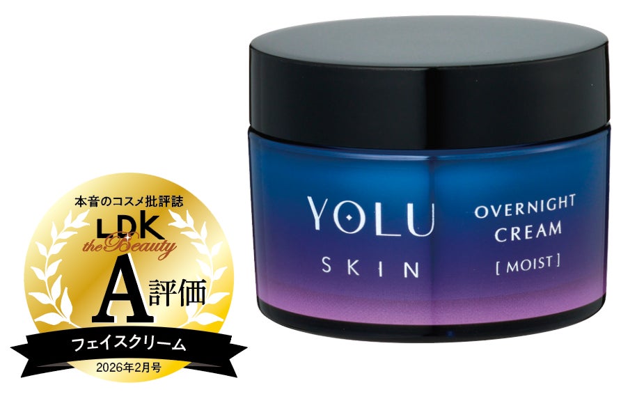 「睡眠と美肌」の関係に着目したYOLUのモイストクリーム。睡眠不足によるカサつきなど肌ダメージのケアをうたうとおり、人肌による保湿力テストの結果も好成績。なめらかに伸びてふっくらとうるおう使い心地のよさも高く評価されました。