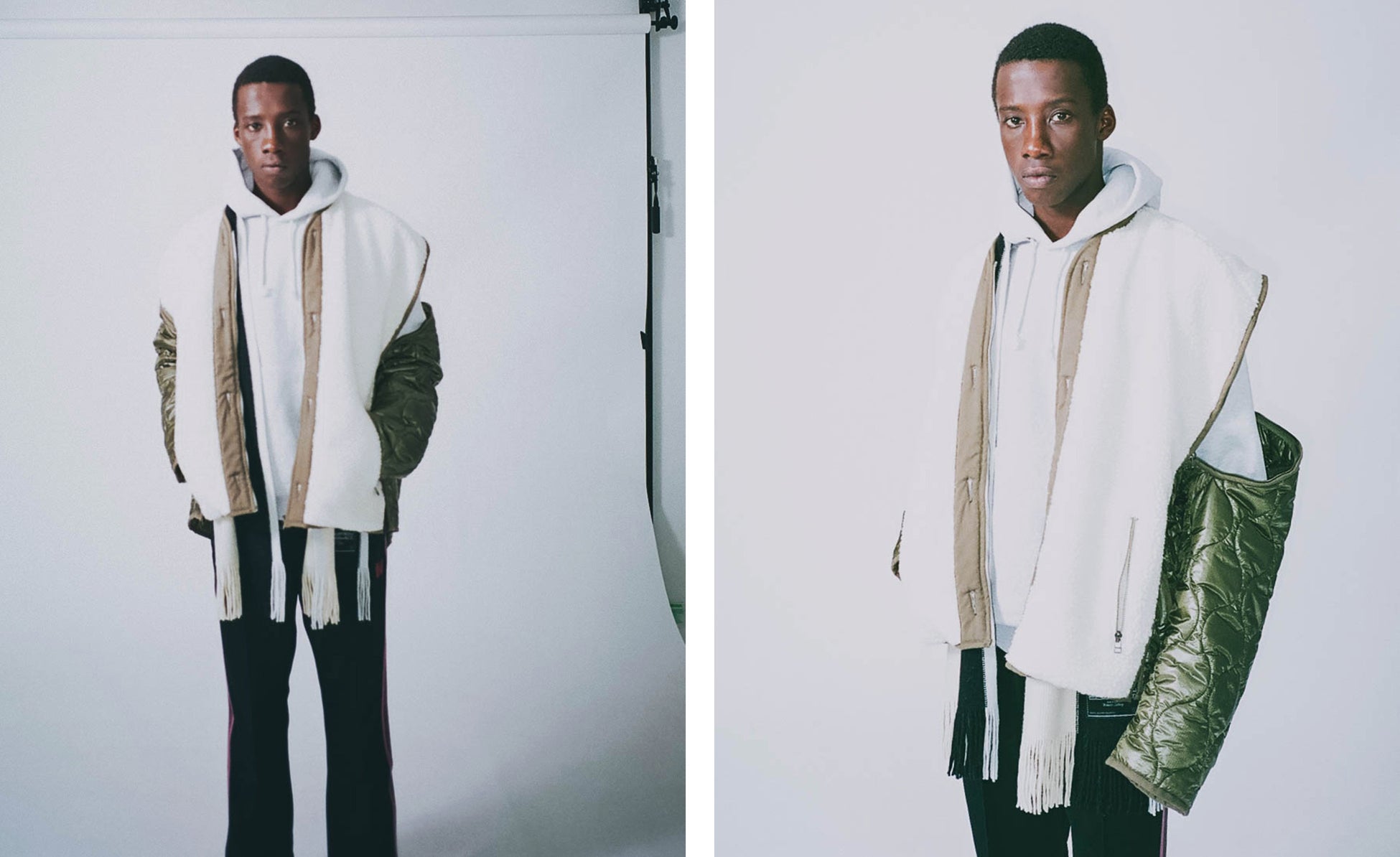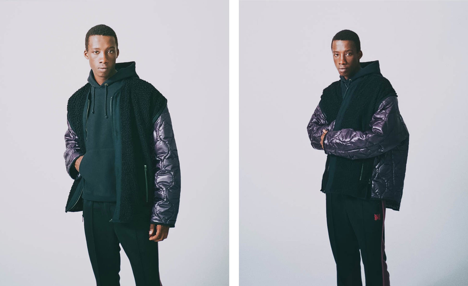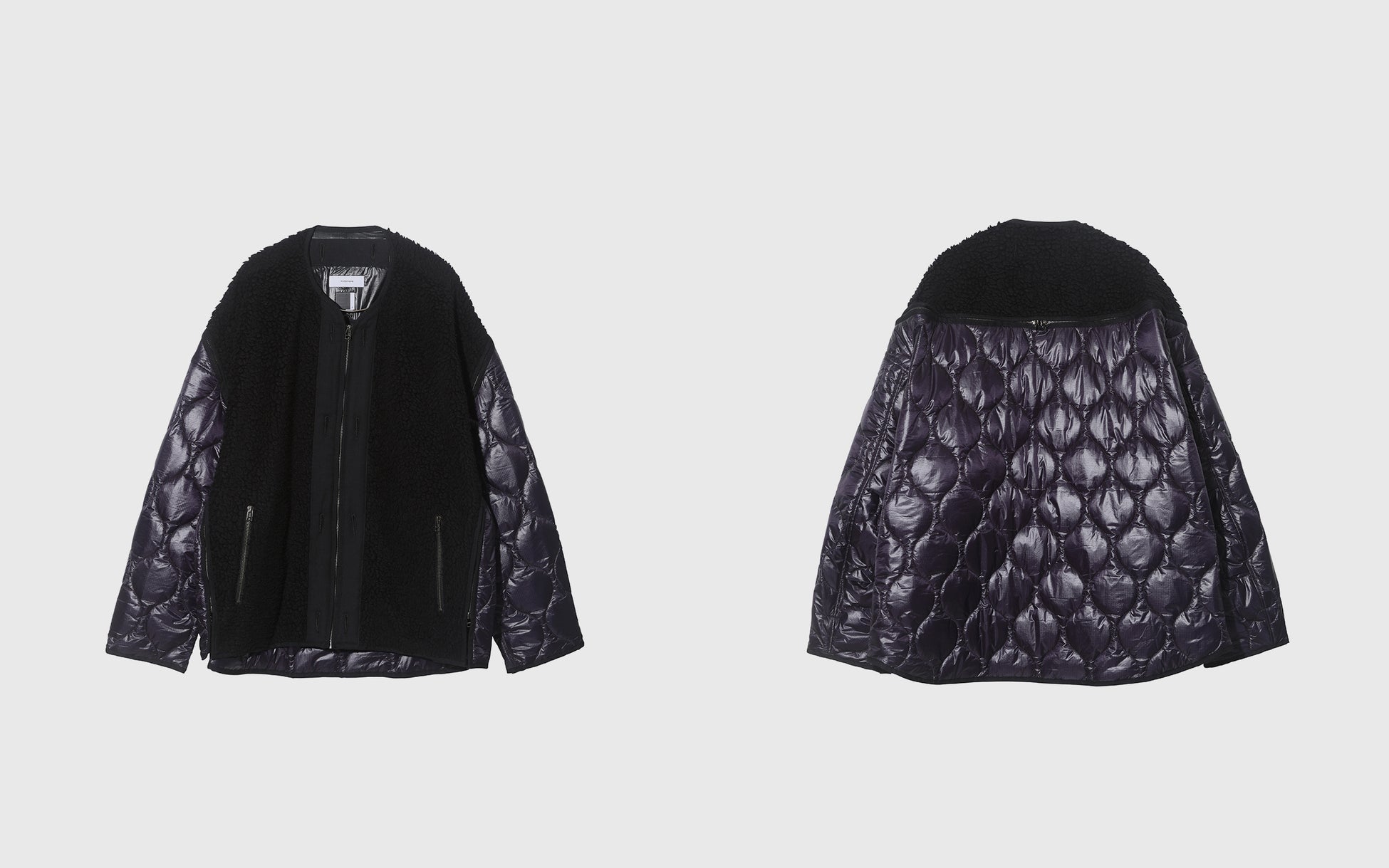 デザイナー落合宏理さんには、Stylesバイヤーからアウトドアブランドのアーカイブの様なカラーリングをリクエスト。キルティング部分にはシェルパ部分と相性抜群なパープル系を配色することによる、アウトドア感とモードストリート感を絶妙に両立した1枚に完成。