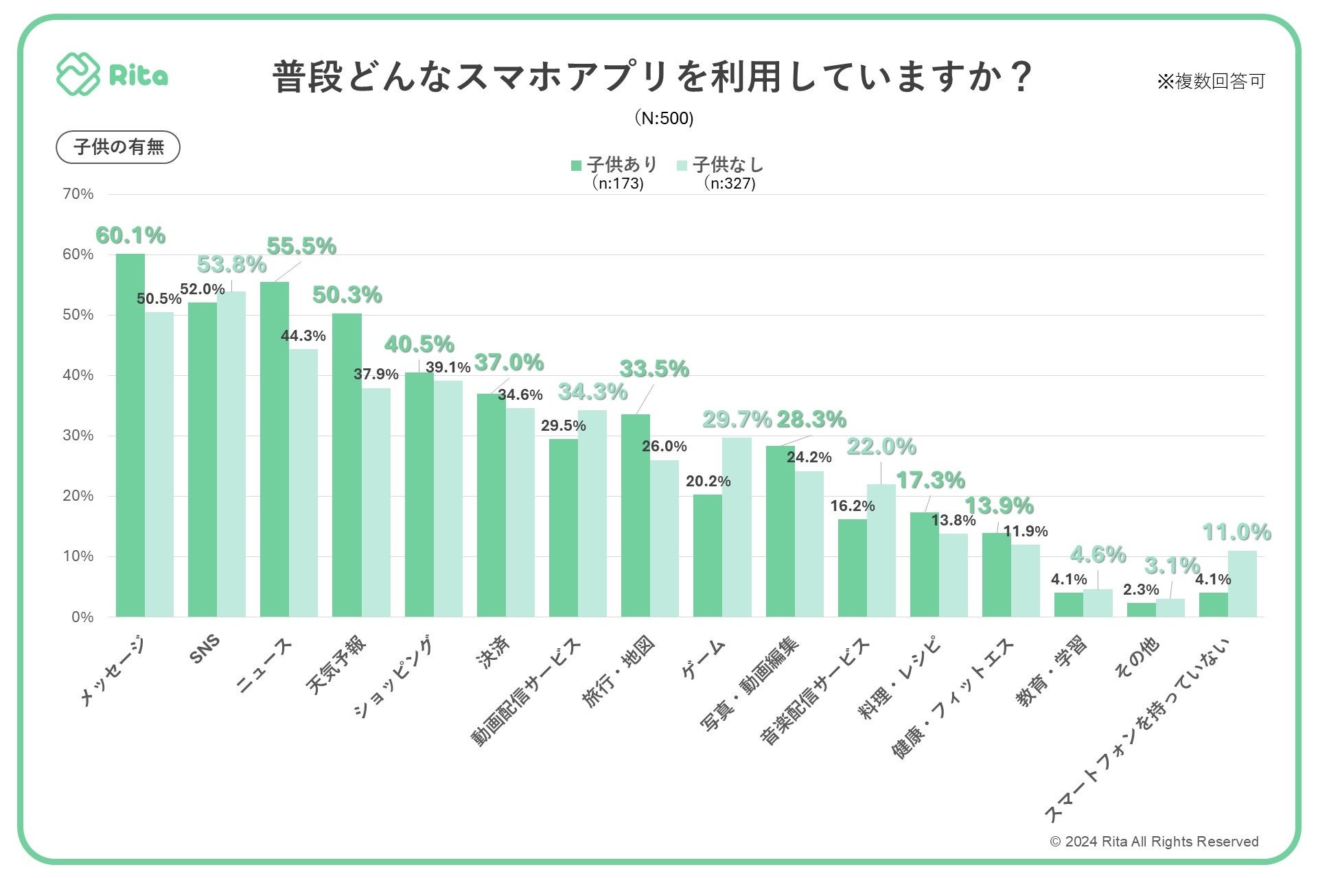 (※複数回答可、ただし「スマートフォンを持っていない」を選択した場合は単一回答)