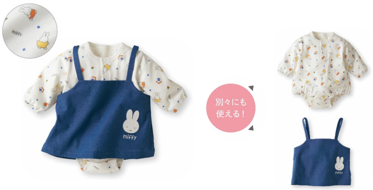 サロペット風のデザインでミッフィーのモチーフがかわいいプレオール。