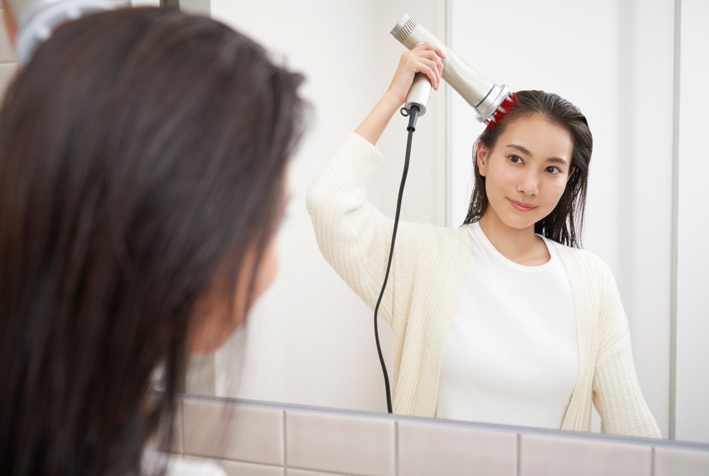 乾かしながら頭皮をケアする本質的な美髪ケアで、将来の髪のために投資ができるドライヤーです。年齢とともに失われがちなトップのボリュームも、根元までまっすぐ届く直進性のある風で立ち上げ、乾かす時間を約30%短縮*2。大風量×約60℃の低温ドライでダメージを抑えながら素早くヘアドライができ、熱や摩擦ダメージを抑制することで「ヴェール髪」へ導く、本質的に髪の質感を「上げる*1」ケアを取り入れられます。
