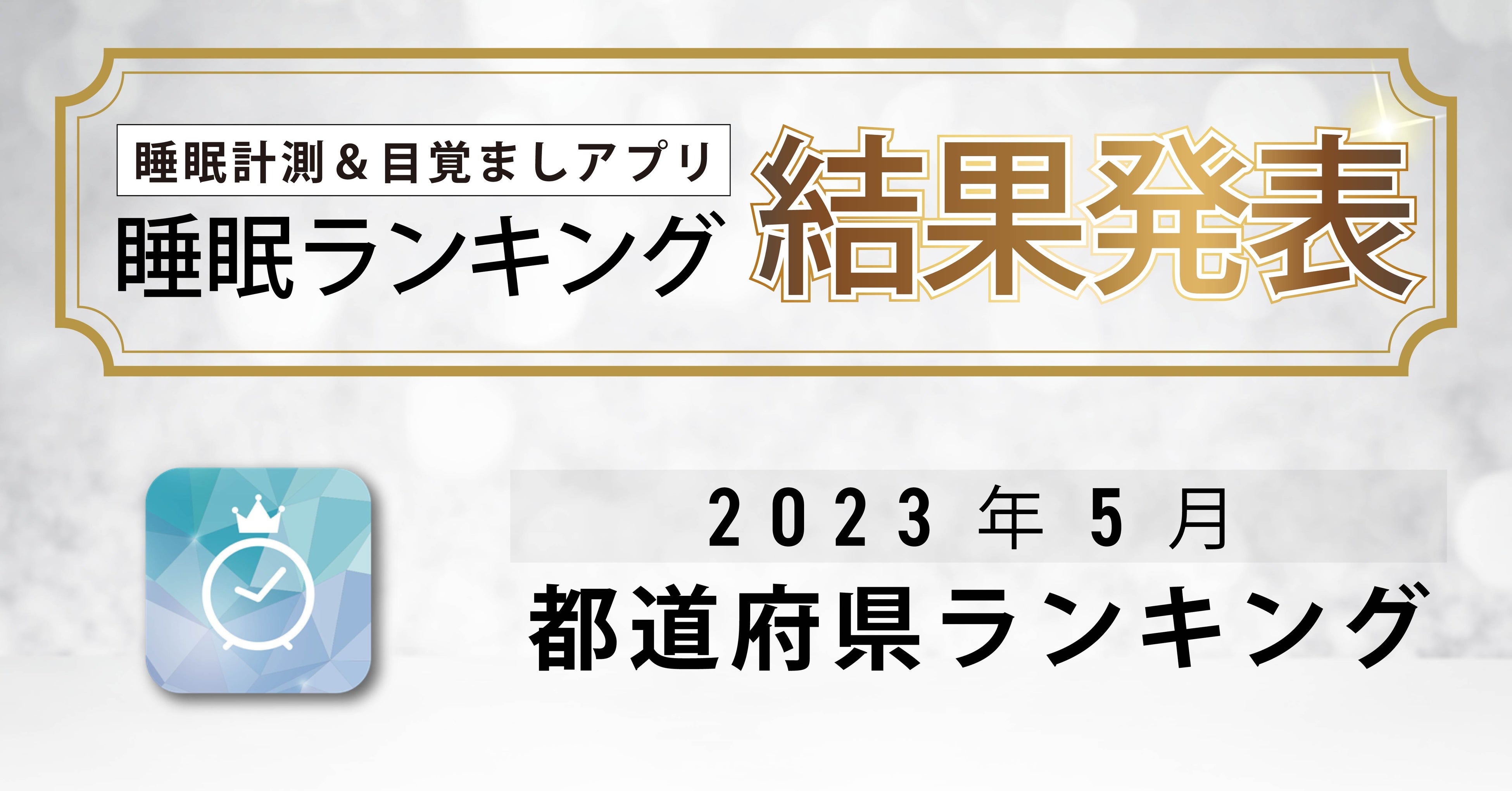 2023年5月1日~5月31日における「睡眠ランキング」の都道府県ランキングを発表します。