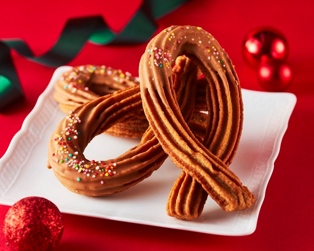 キャラメル香るモチっとした食感のチュロス生地に、カラフルなシュガースプレーをデコレーション。ドリンクと合わせてどうぞ。
