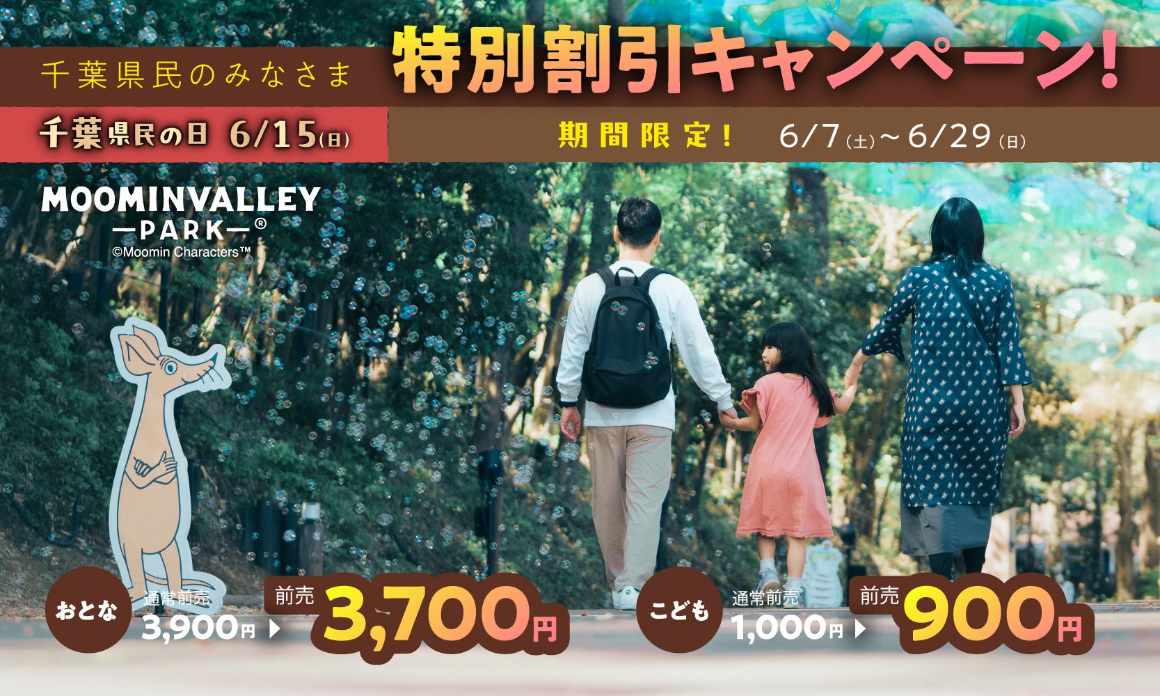 株式会社ムーミン物語(本社:埼玉県飯能市、代表取締役社長:小幡 匡志)が運営する「ムーミンバレーパーク」では、千葉県民の日(6月15日)にちなみ、当日はこども(4歳以上高校生以下)が無料でご入園いただけるキャンペーンを実施。さらに、2025年6月7日(土)~6月29日(日)の期間限定で、千葉県在住の皆さまを対象とした特別割引キャンペーンを実施いたします。