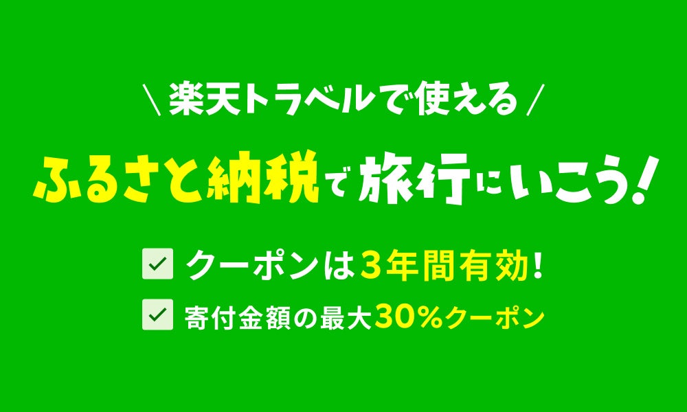 本返礼品は、ユーザーが「楽天ふるさと納税」を通じて対象自治体に寄付を行い、返礼品として受け取ることができる、寄付額の最大30%相当の旅行クーポンです。旅行予約サービス「楽天トラベル」で、自治体内の対象宿泊施設を予約する際に利用することができ、利用期間は3年間となっています。