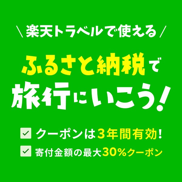 対象宿泊施設: 「楽天トラベル」にて、対象宿泊施設の予約時にのみ利用可能です。寄付前に成立済の宿泊予約に後から「楽天トラベルクーポン返礼品」を利用する場合、対象施設や対象予約に一部追加条件があります。詳細は、特設ページを参照ください。