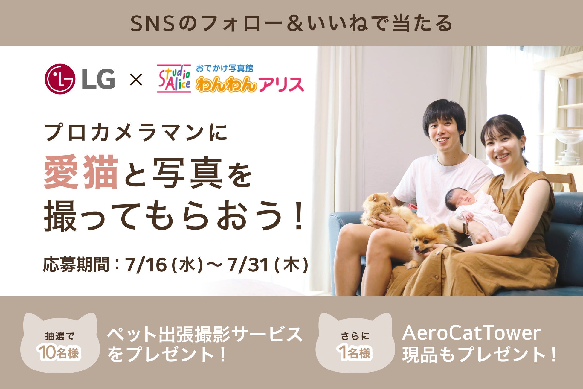 ~出張撮影サービス利用券と、「LG PuriCare™ AeroCatTower」が当たる!~
