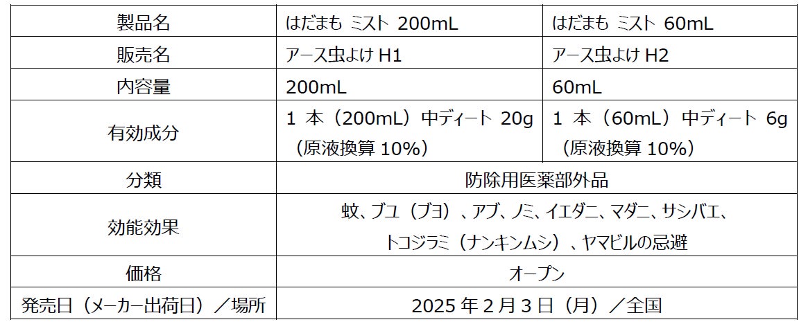 アース製薬株式会社(本社:東京都千代田区、社長:川端克宜、以下 「アース製薬」)は2月3日(月)に、素肌と同じ弱酸性でお肌にやさしいミストタイプの虫よけ剤『はだまも ミスト』を全国で発売しました。