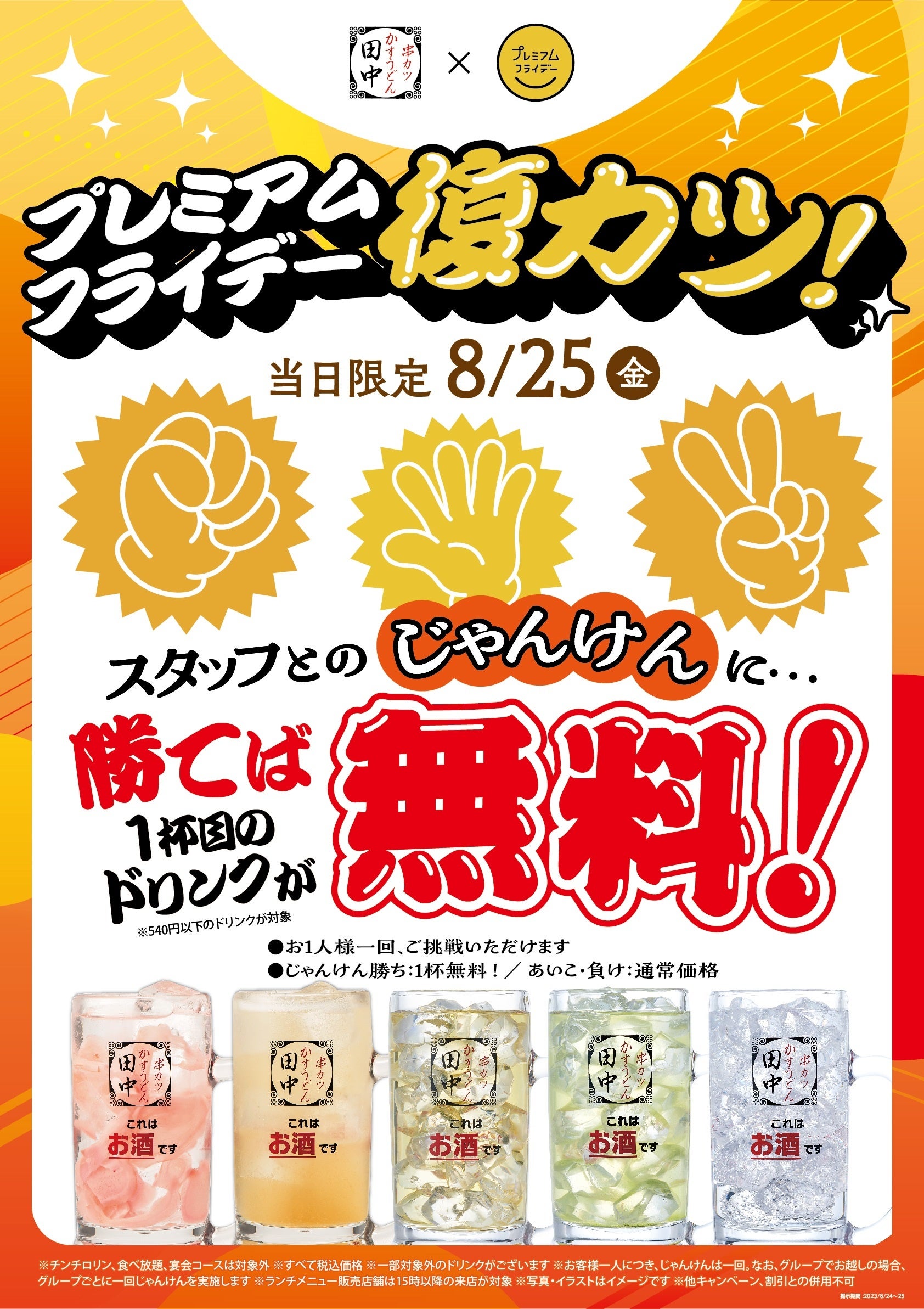 串カツ田中の今期のスローガンである「More fun More fan(もっと楽しく もっとファンに)」の取り組みの一つとして、月末金曜日にご来店いただいたお客様へ楽しいプレミアムなひとときを提供することで、お客様に“もっと楽しく・もっとファンに”なっていただきたいと考えています。