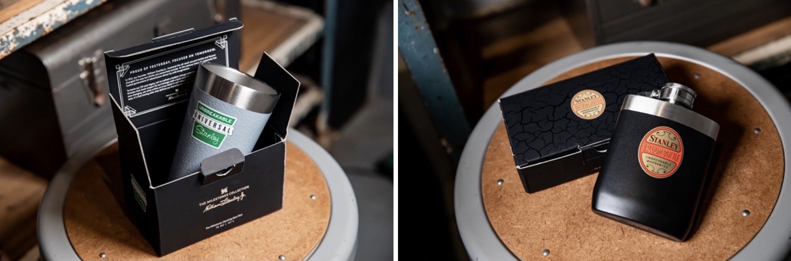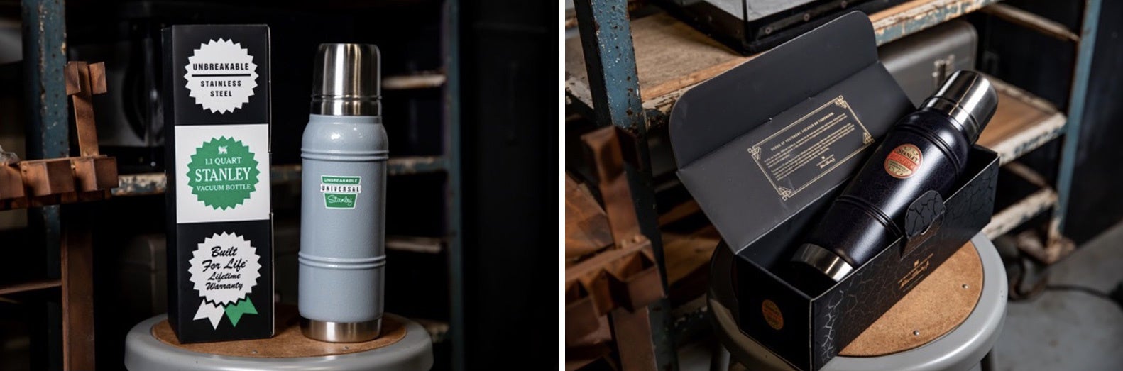 創業者ウィリアム・スタンレー・ジュニアによるスチール製真空ボトルの発明は、それまでの屋外での飲み物の飲み⽅を⼀変させる⾰新的なもので、その後、何世代にも渡る世界中の⼈々に愛され、今⽇の豊かな⽣活をサポートしてくれる基盤となりました。その110年にも渡る歴史と伝統に敬意を表し、ブランドを象徴する「真空ボトル1L」や、室内外問わず⼈気の「真空パイント0.47L」などのアイテムを1920年代、60年代とそれぞれ異なる時代を思い出させる、懐かしいカラーとレトロな復刻ロゴでデザインし、進化を遂げた断熱性、耐久性など最新の機能を搭載した「マイルストーンコレクション」が限定登場します。