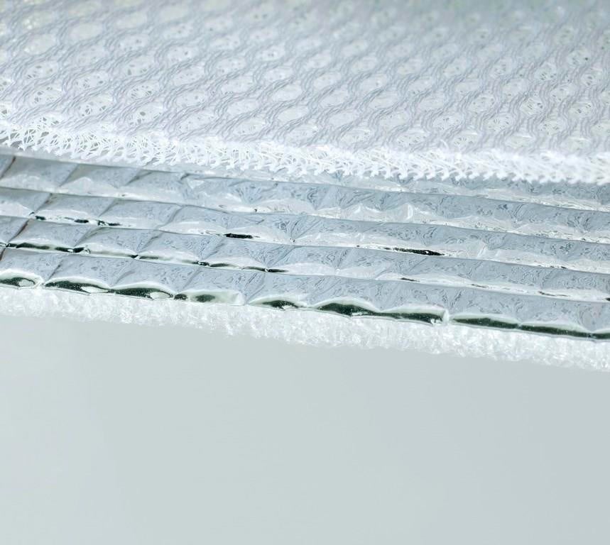 内側アルミ蒸着の上に3mmのダブルラッセルメッシュの空気層による断熱効果で保冷時間長持ち!