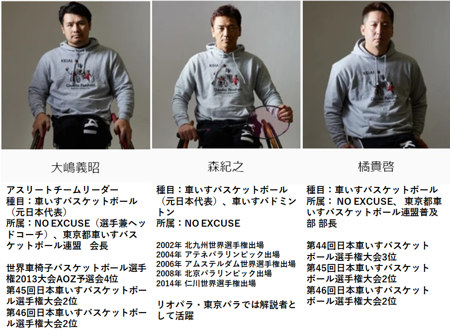 その一環として2019年4月に当社所属の障がい者アスリート5名でケイアイチャレンジドアスリートチームを発足しました。現在、「車いすバスケットボール」のチームであるNO EXCUSEに所属している3名の他に、日本代表選手を含む「デフフットサル」、「デフサッカー」、「ろう者柔道」、「車いすバドミントン」の各競技に計8名のアスリートが所属しています。
