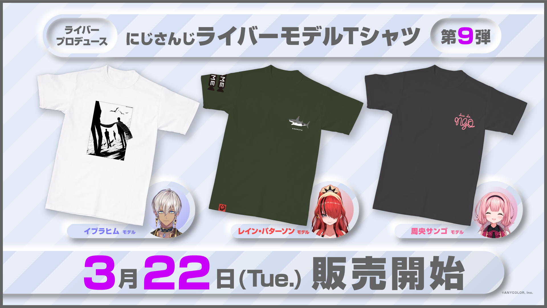 それぞれの個性が光るデザインの「にじT」第9弾は、にじさんじオフィシャルストア(http://shop.nijisanji.jp/)にて、2022年3月22日(火)12時から販売を開始いたします。