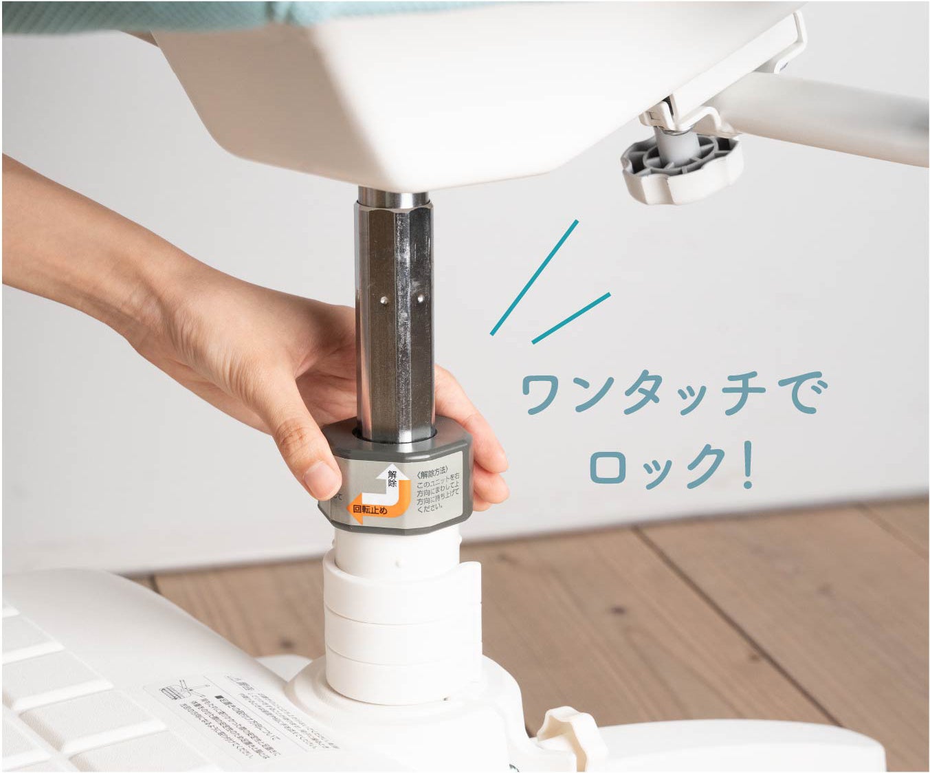 支柱にある座面ロック機能によってワンタッチで座面の回転ロックと可動を切り替え可能です。くるくる回るのが楽しくて遊んでしまう場合は、座面をロックすることでお子さまの集中を邪魔しません。