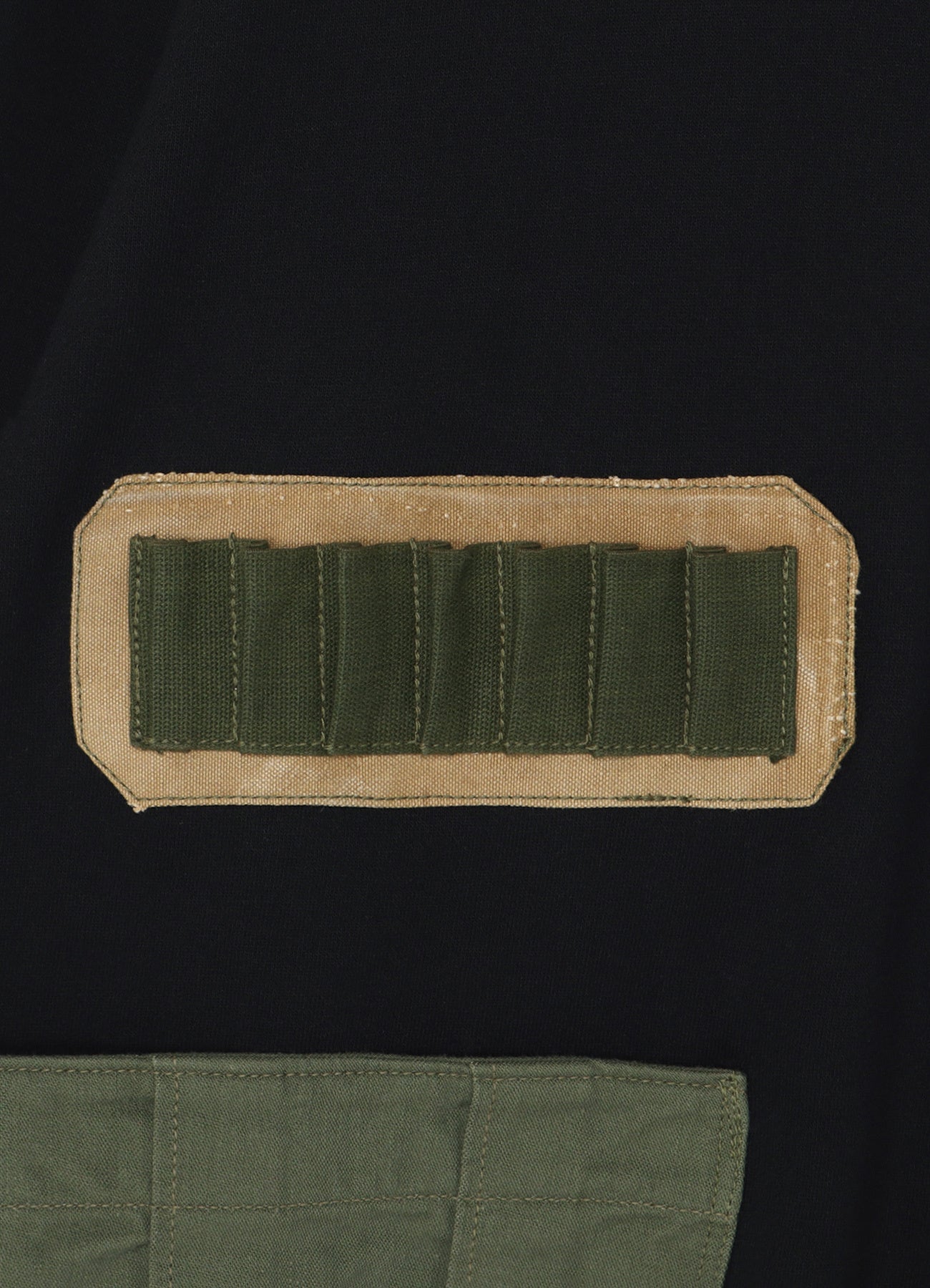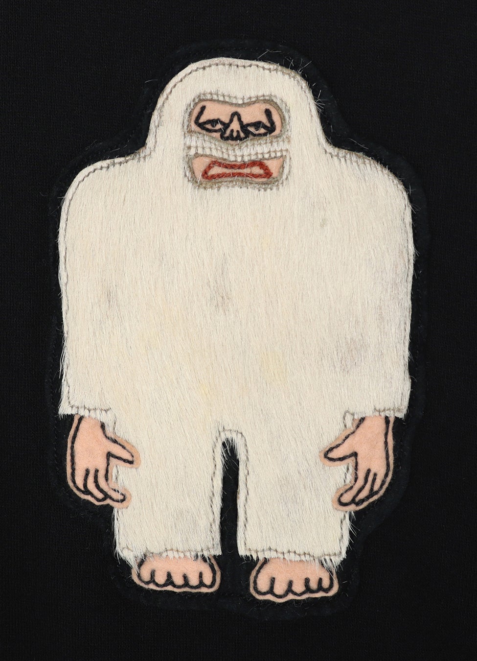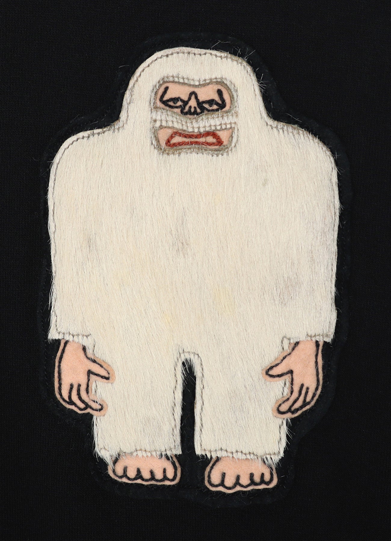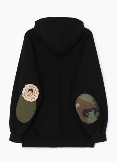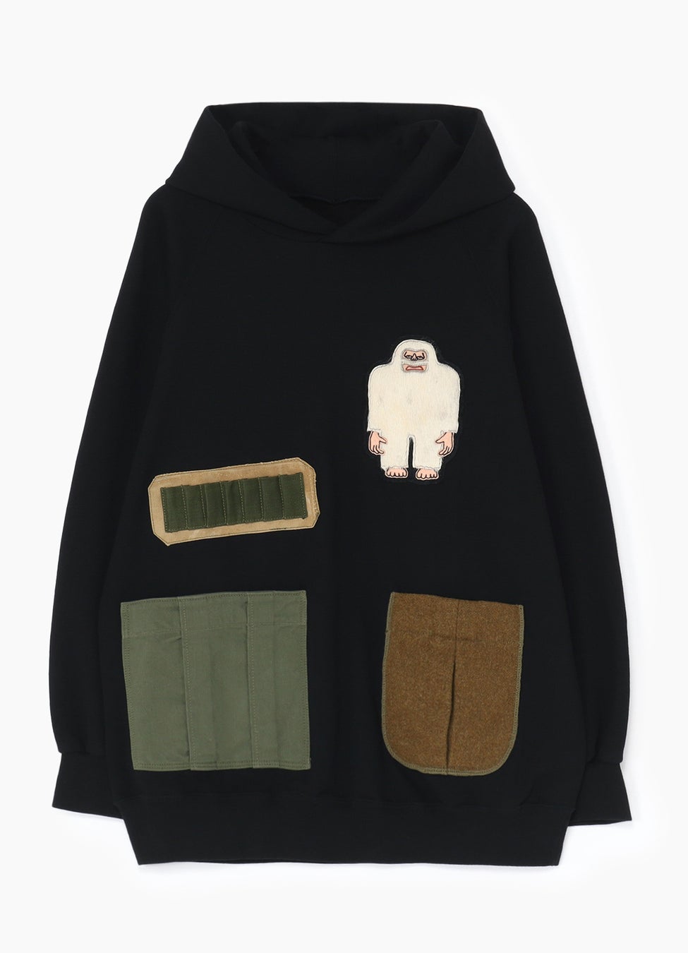 ヨウジヤマモト社のフーディーをベースに、拘りのディテールを散りばめた贅沢な一品です。フロント左胸のイエティパッチ、左ひじのスパイダーウーマンパッチは<NORTH NO NAME>によるもの。フロント右胸のカートリッジホルダー、右裾のカーゴポケット、左裾の立体ポケット、両ひじのエルボーパッチは<Room No.6>が手掛けています。