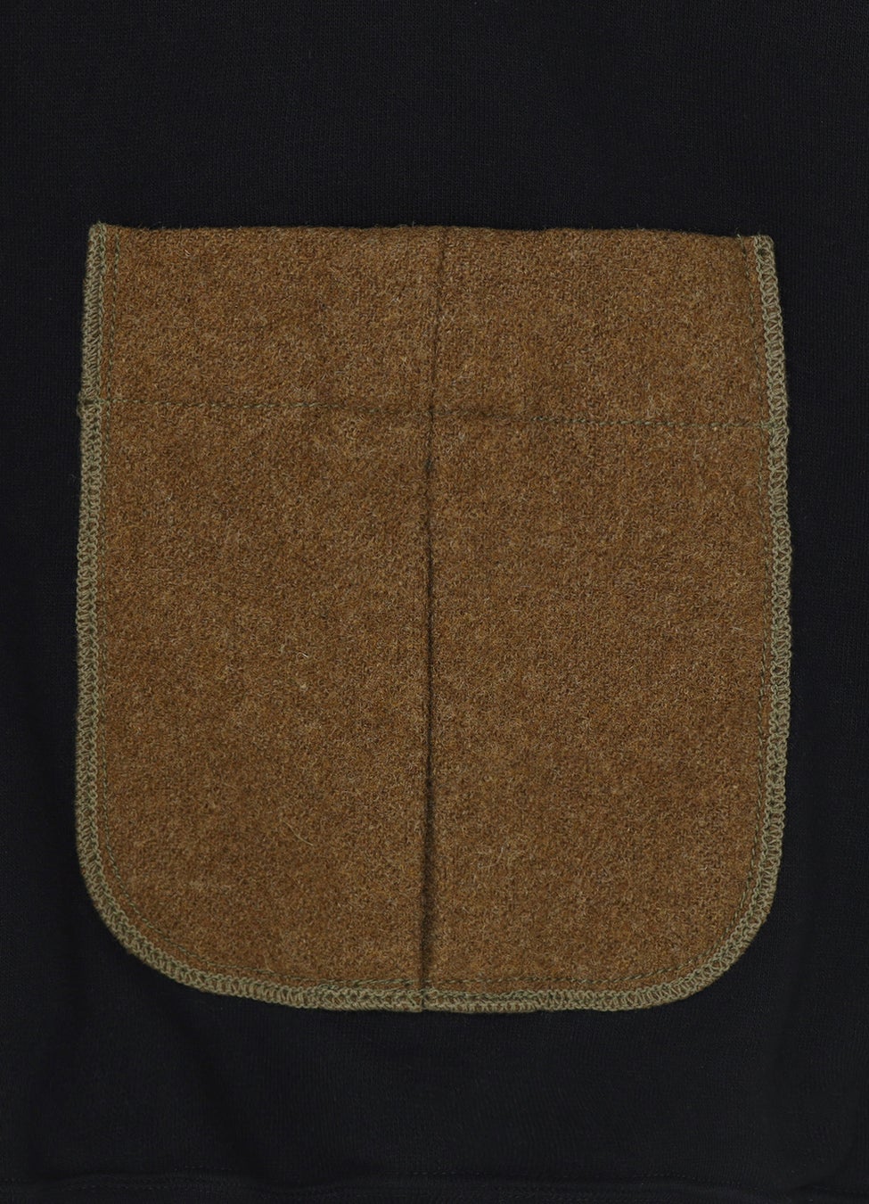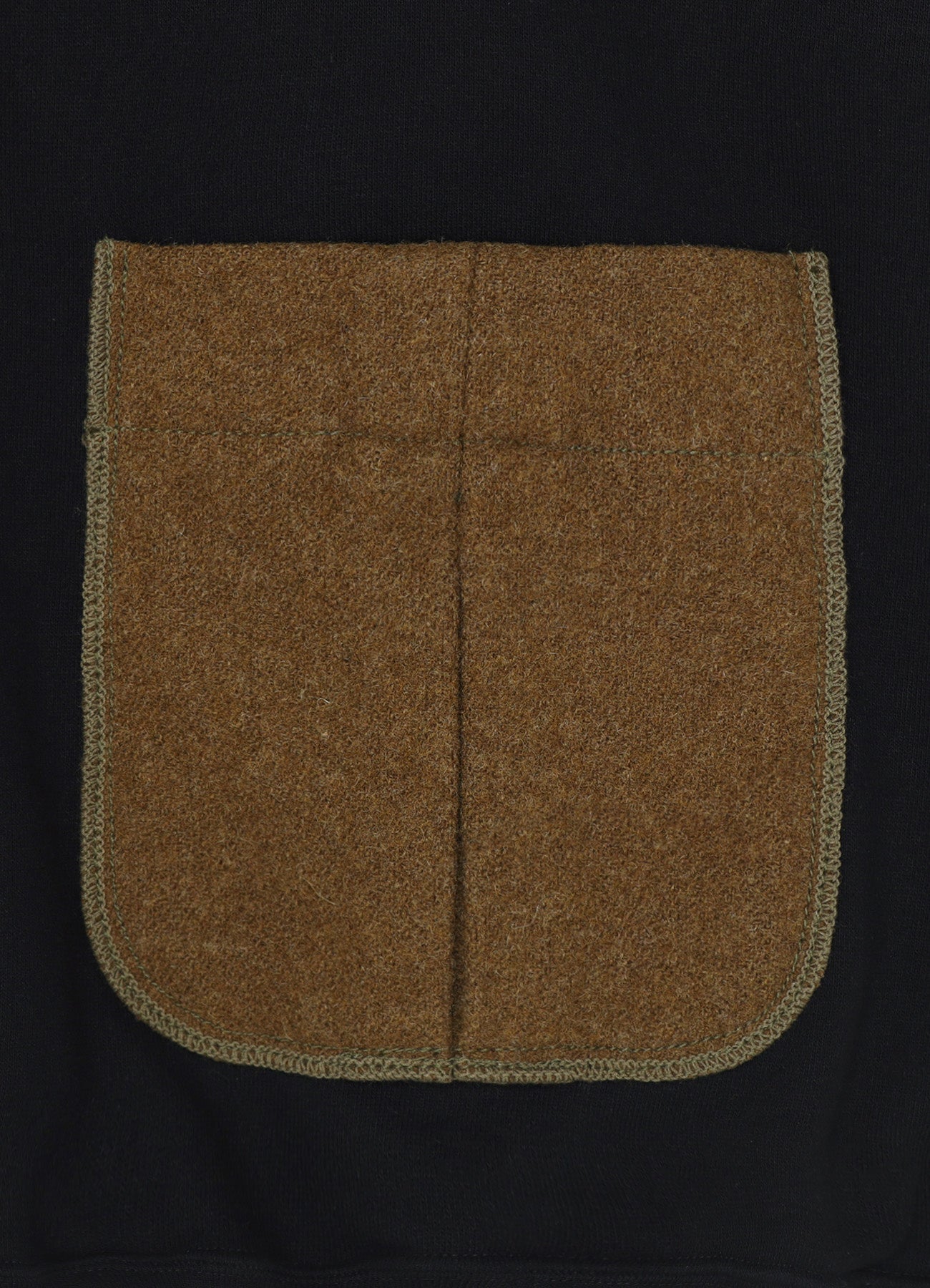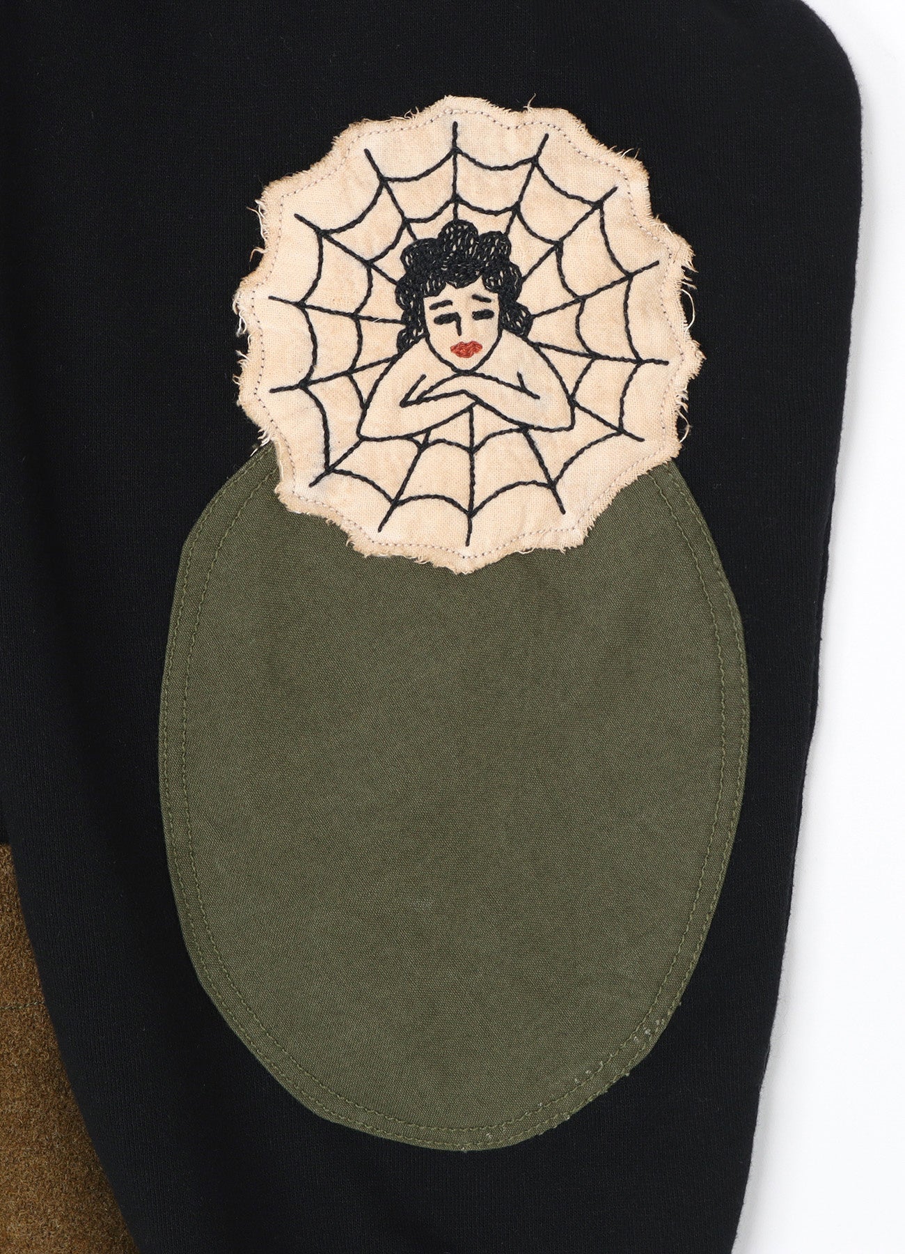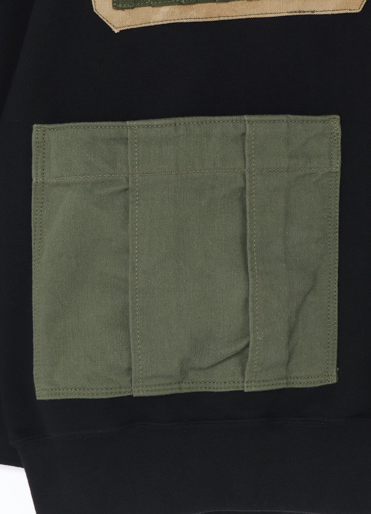 ヨウジヤマモト社のフーディーをベースに、拘りのディテールを散りばめた贅沢な一品です。フロント左胸のイエティパッチ、左ひじのスパイダーウーマンパッチは<NORTH NO NAME>によるもの。フロント右胸のカートリッジホルダー、右裾のカーゴポケット、左裾の立体ポケット、両ひじのエルボーパッチは<Room No.6>が手掛けています。