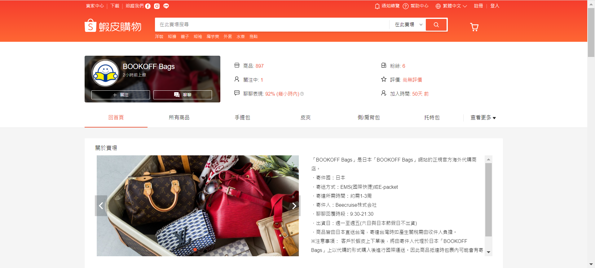 台湾:蝦皮購物(Shopee taiwan) バッグ https://shopee.tw/bookoff02.tw