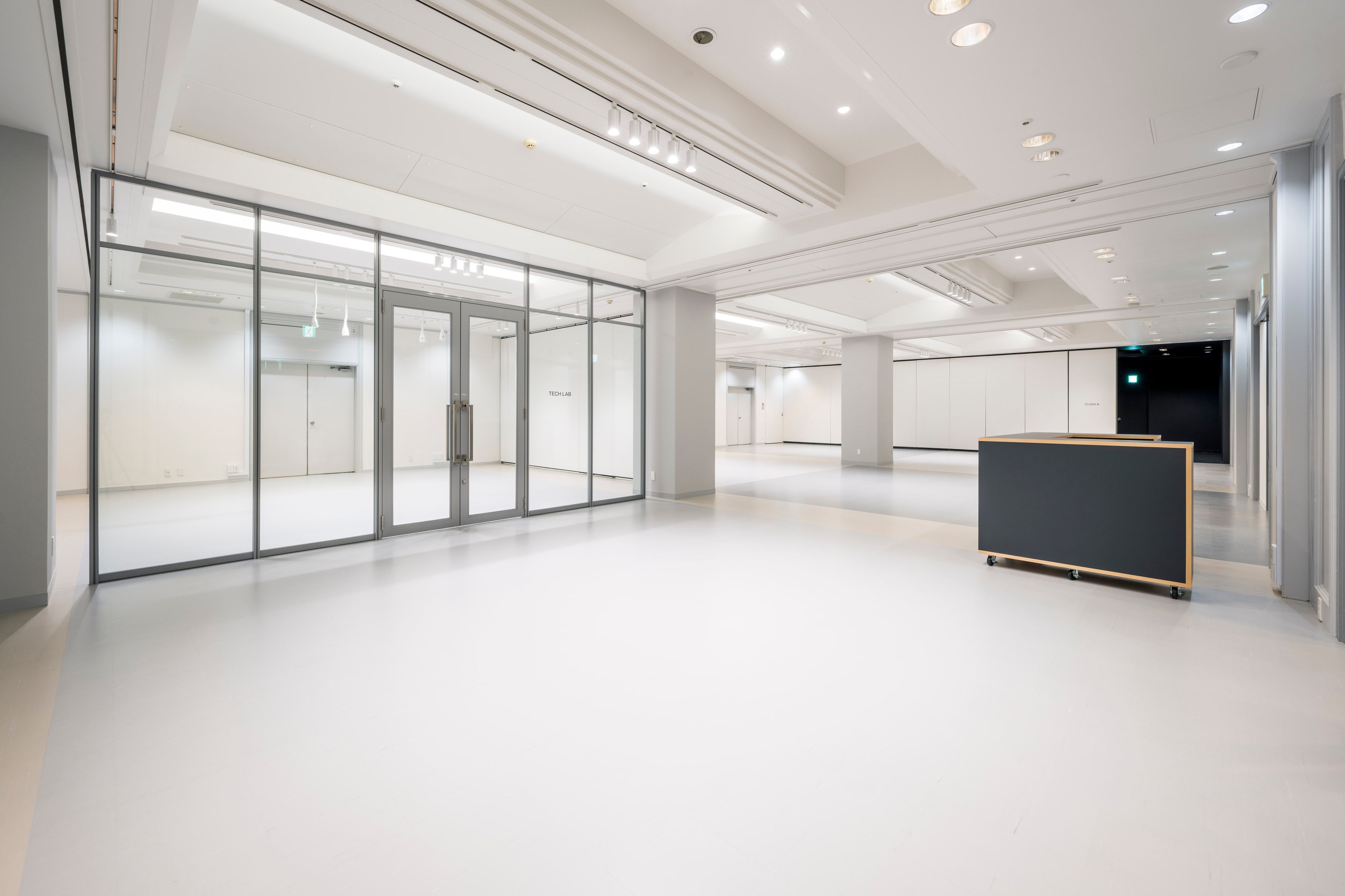 CCBTの各スペースは稼働壁で仕切られているため、利用の目的に合わせてフレキシブルに空間を設定することができます。スタジオでの作品展示、テックラボにおける創作活動やワークショップ、オープンスペースでのレクチャーなど多様なプログラム展開に対応します。