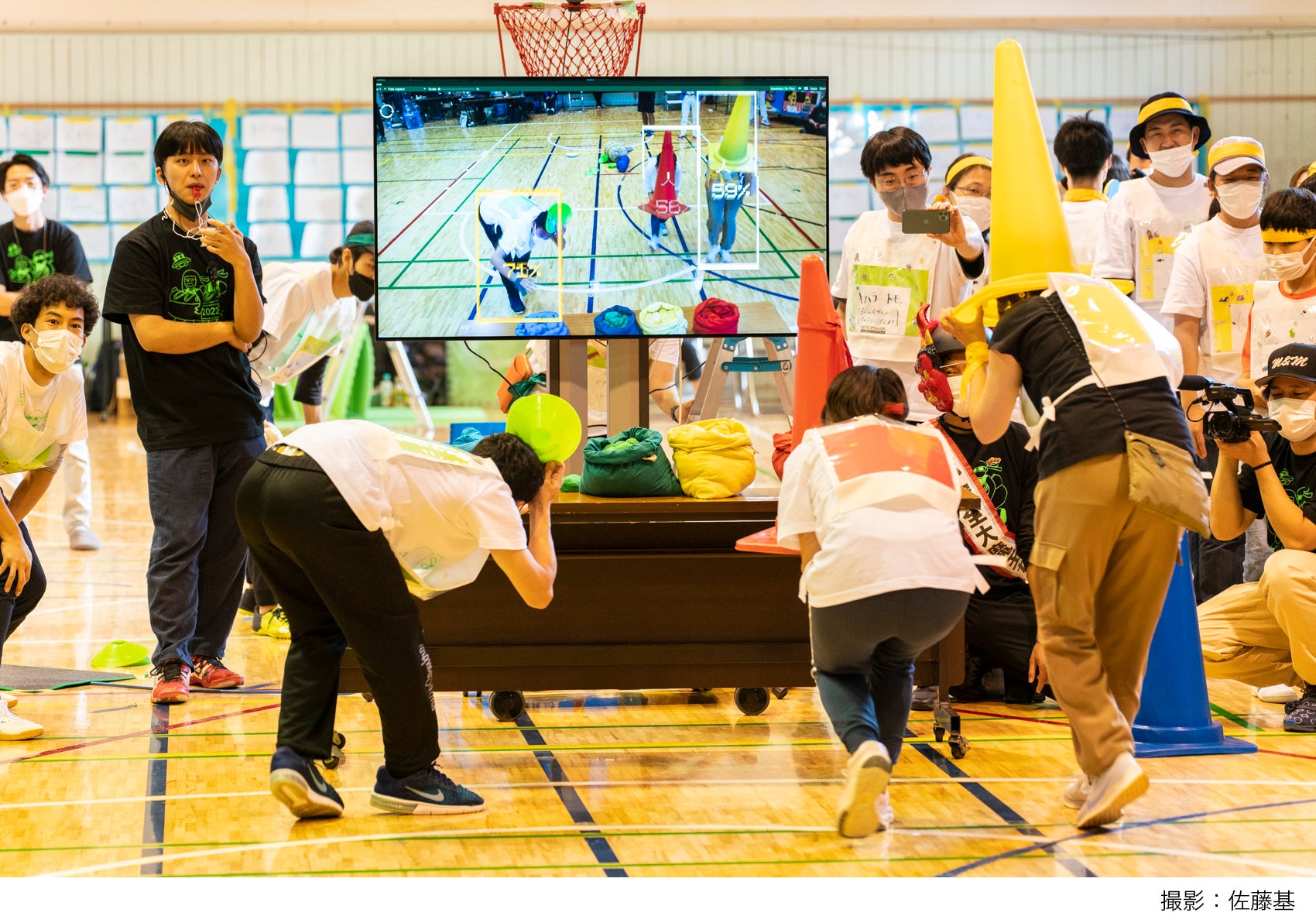 アーティスト・フェローとして活動中の「犬飼博士とデベロップレイヤーたち」 と参加者が、5回にわたるワークショップやハッカソン、そしてオンラインコミ ュニティで交流し、競技のルールとツールを製作。延べ約100名が参加。みんな で作り上げた「未来の東京の運動会」をCCBT近隣の渋谷区・神南小学校にて開 催し、デジタル技術を活用した新しい競技をプレイしました。