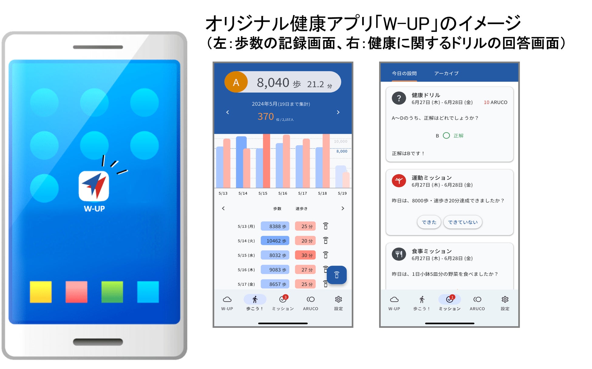 さらなる運動習慣の定着を図るべく、オリジナル健康アプリ「W-UP」を立ち上げてグループ会社全体へも導入し、2025年1月20日よりグループ会社の社員を対象に、「W-UP」を通じて参加できるウォーキングイベントを開始いたしました。今後もアプリを活用しながらグループ一丸となって社員の健康維持に取り組んでまいります。