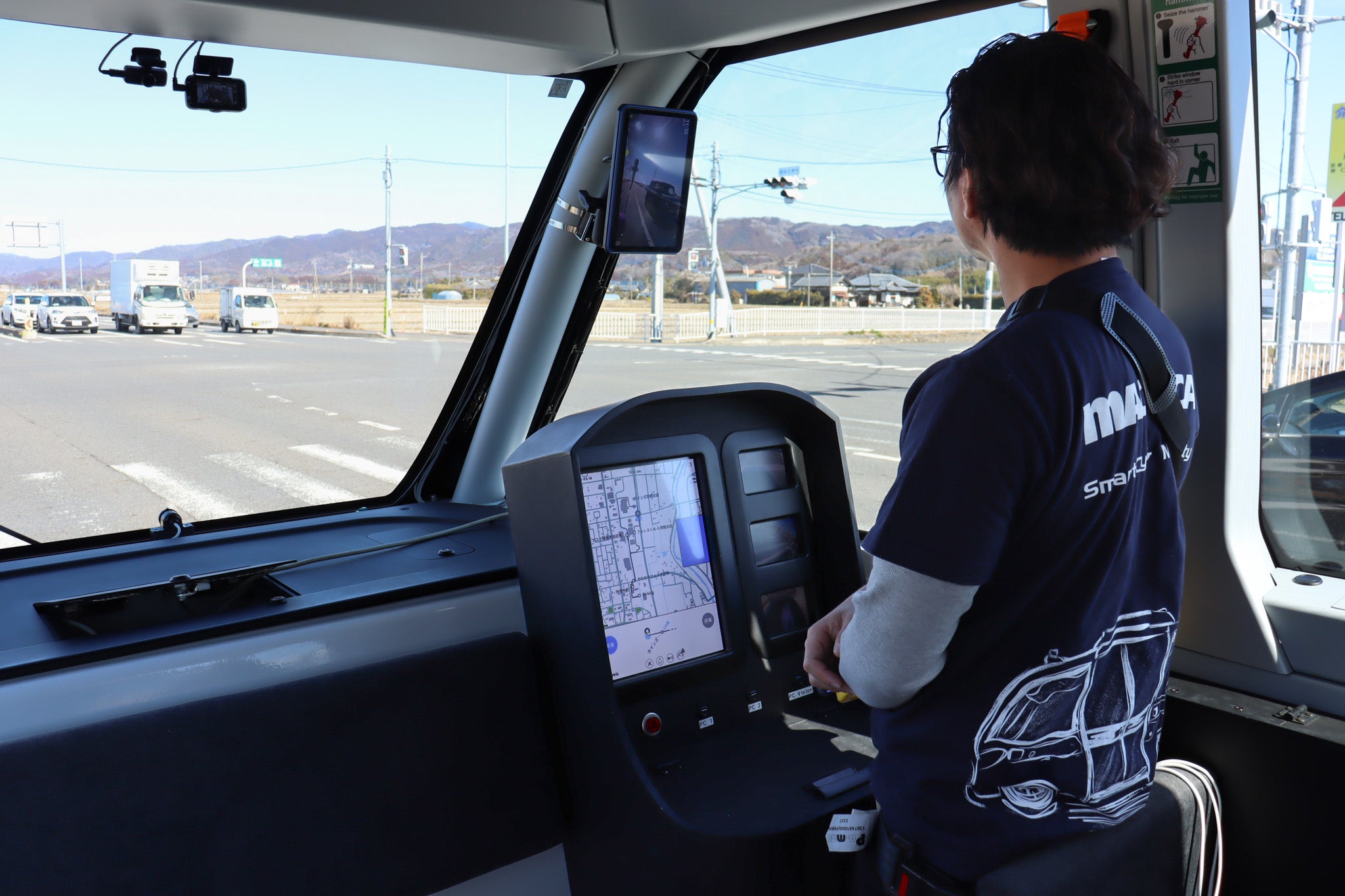 実施業務:自動運転EVバス「ARMA(アルマ)」のオペレーターとして運行・市役所内に設けられた遠隔監視センターにて監視業務