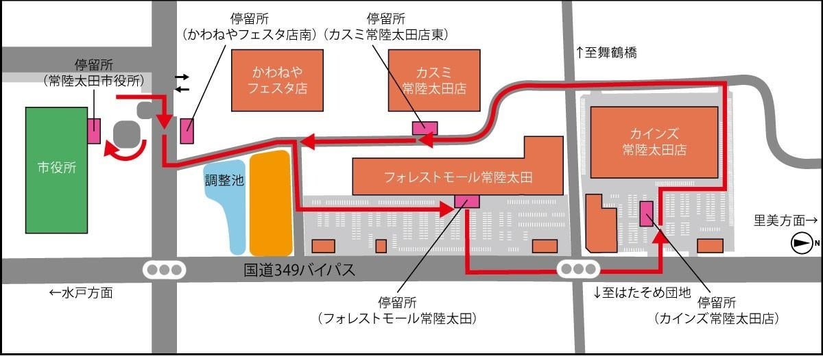 走行ルート:市役所や東部地区の商業施設を結ぶルート