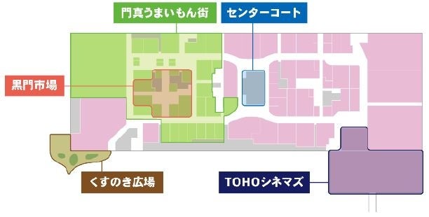- ららぽーと153店舗(大阪初出店20店舗)、MOP98店舗(関西アウトレット初出店17店舗)、計251店舗を一挙公開。黒門市場を含む食の一大ゾーンが誕生。
