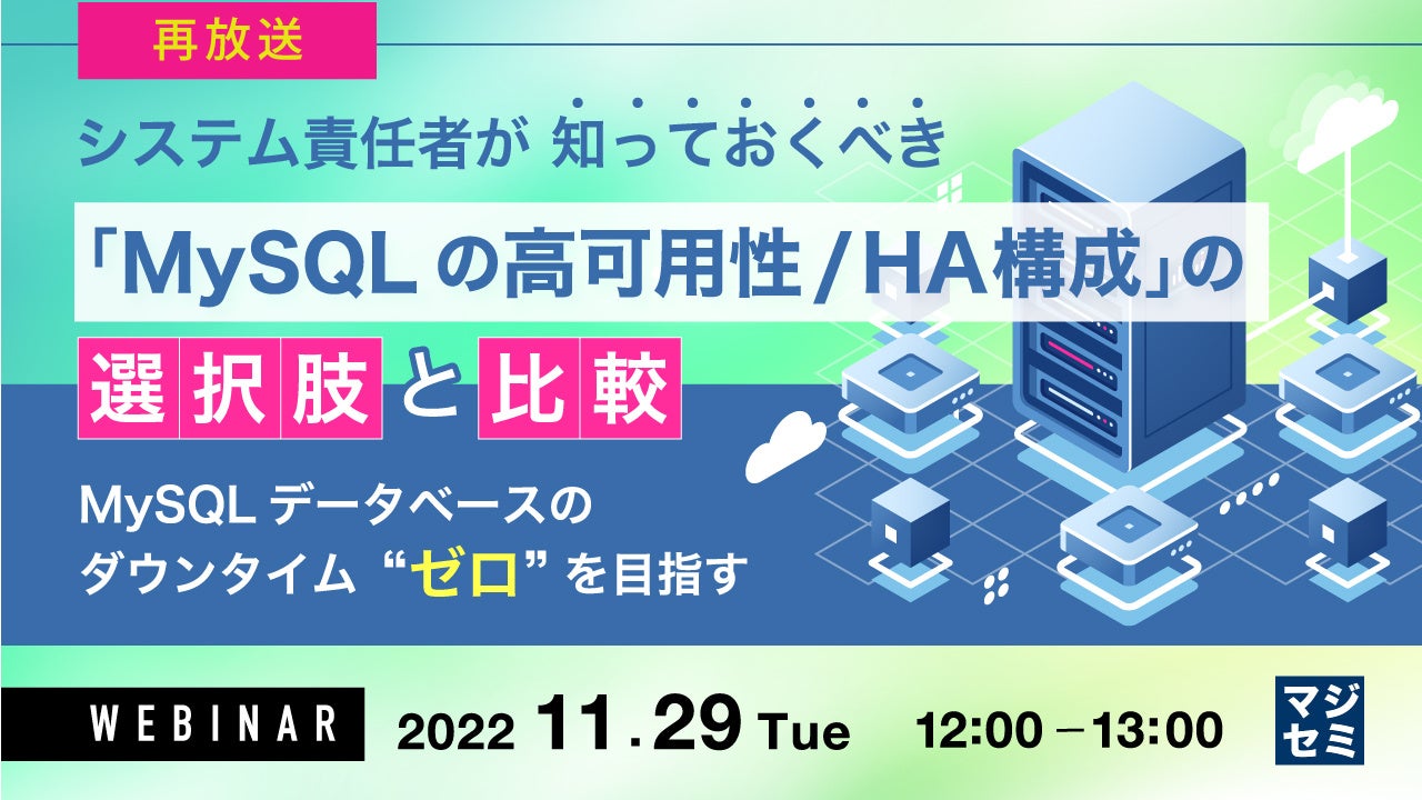 マジセミ株式会社はMySQLのHA構成の選択肢と比較というテーマのウェビナーを開催します。