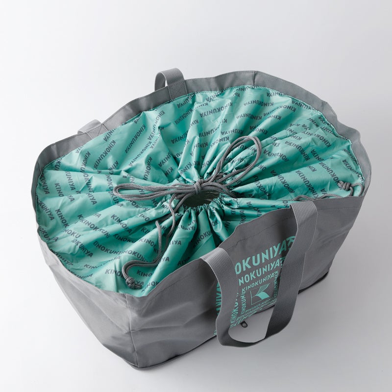 レジカゴにぴったり収まるサイズで、会計時にセットすれば袋詰めの手間をぐっと短縮。上部は巾着仕様になっており、大きく開くので商品の出し入れもスムーズです。持ち手が付いているのでそのままお買い物にも持ち歩けます。使わないときはコンパクトに折りたたんで、バッグにすっきり収納可能。機能性とデザイン性を兼ね備えており、日々の暮らしに寄り添います。