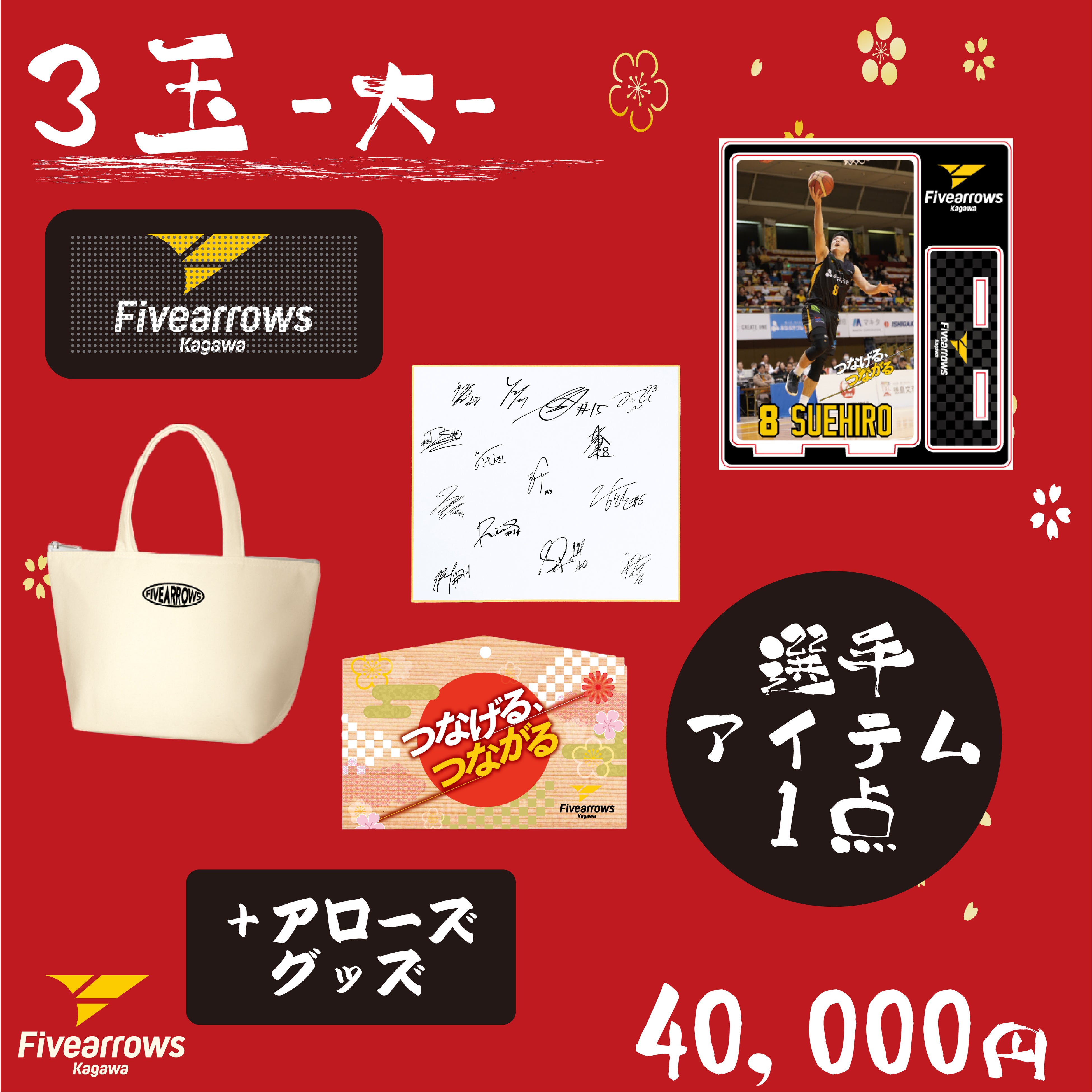 このたび12/27(水)よりオンラインショップにて香川ファイブアローズ2024福袋を販売いたします。今季はドドンと3グレードご用意!