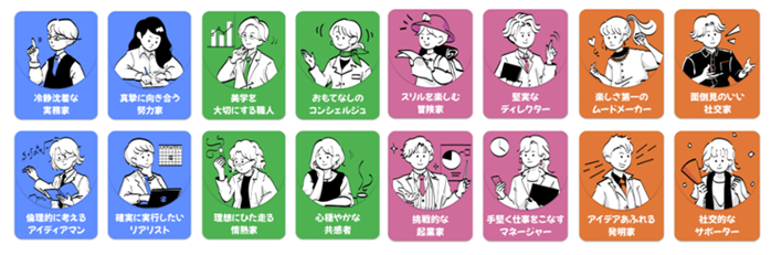 自己理解を深められる「特性診断」を通じ、自身の性格や価値観に合った求人に出会えます。特性診断は、人間の性格はいくつかのタイプに分類することができるという「類型論」に基づいた分析で、16タイプのうち、個人に最も強く適合する「1位から3位まで」の適合タイプが表示されます。検査結果には、自身に適合する3タイプの性格や強みが記載されているため、自己理解を深めることに役立ちます。