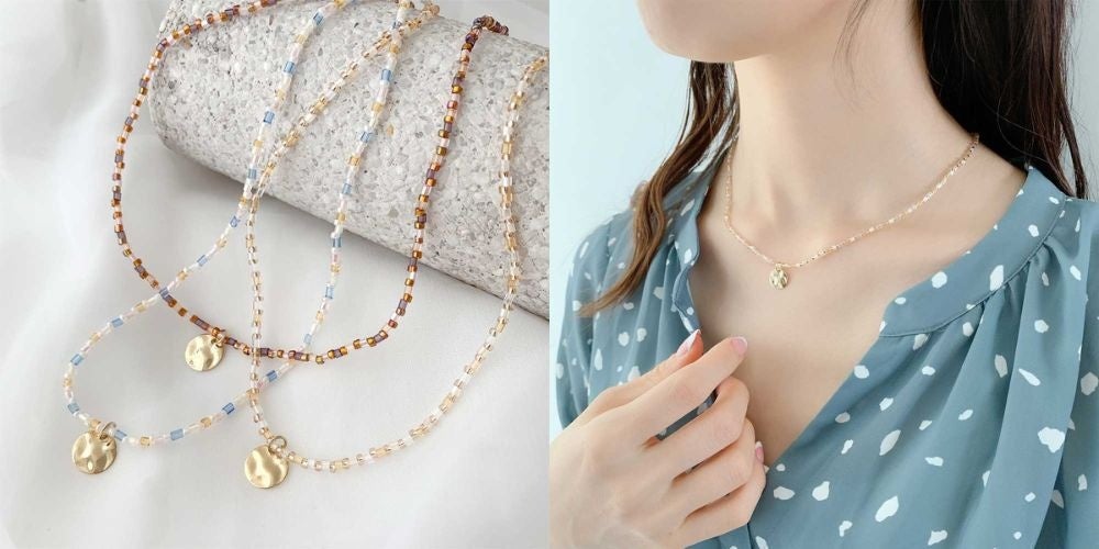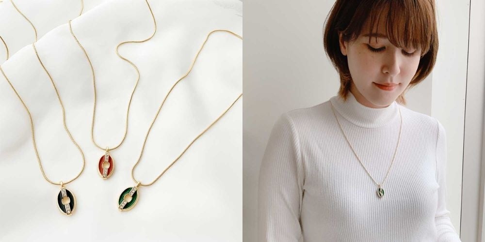 チェーンの種類、長さ、モチーフなど、ディティールによって印象が左右されるネックレス。