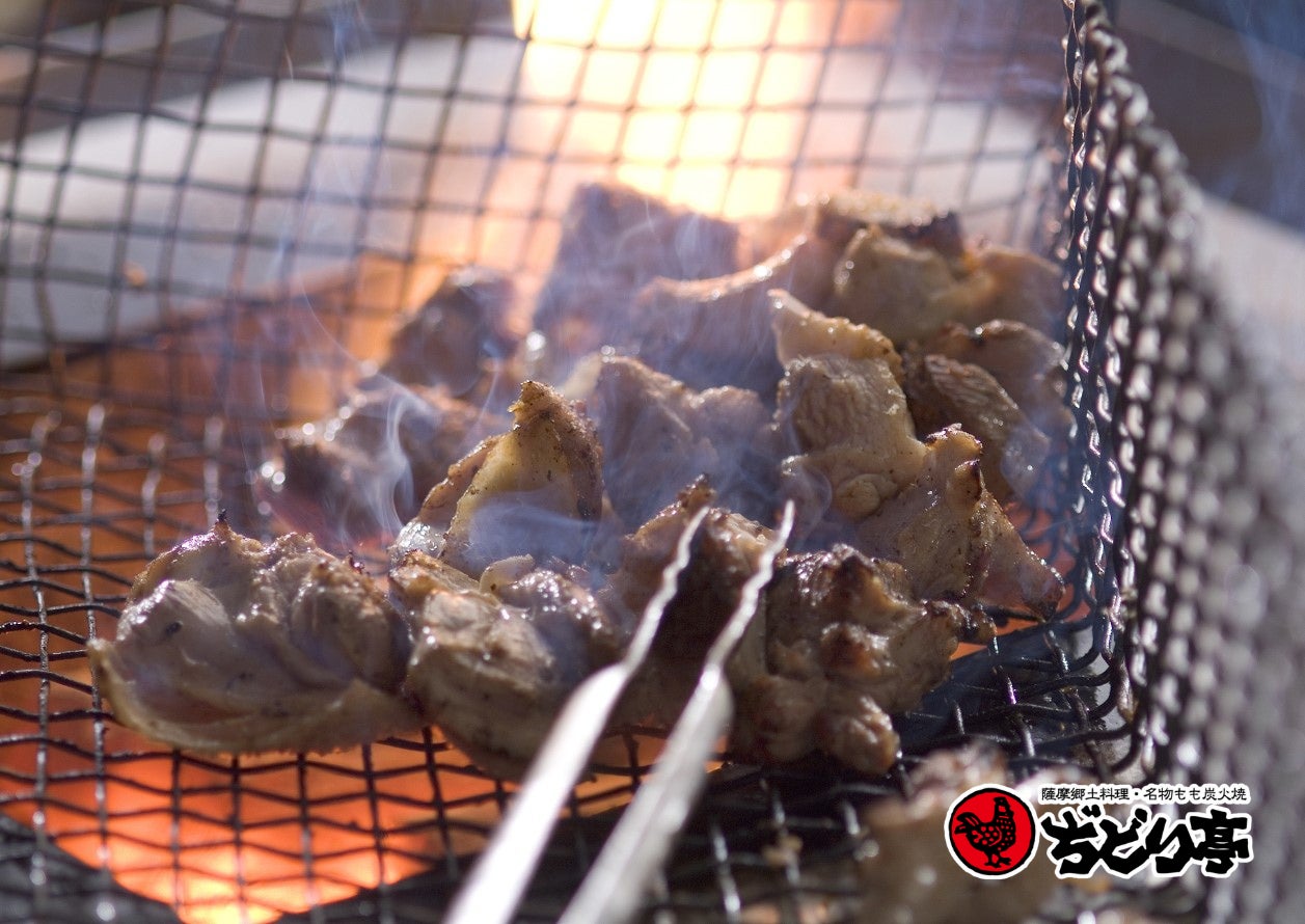 ぢどり亭の焼き鳥は、本場九州薩摩のスタイルを取り入れた『バラ焼き方式』。味わい深いこだわりの親鶏を直接炭火で豪快に焼いた、今までにない味わいと風味の焼き鳥をご提供します。