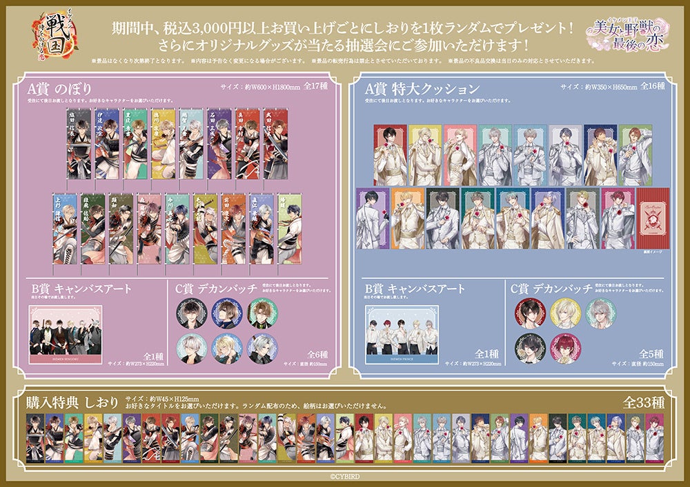 今回のイベントでは、『イケメン戦国◆時をかける恋』『イケメン王子 美女と野獣の最後の恋』の新作グッズを販売いたします。