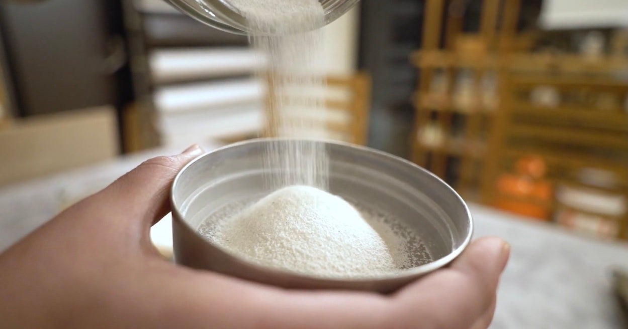 店内のテーブルの天板には廃棄される衣類をアップサイクルした素材「PANECO」を使用しています。また、壁面や柱上部には卵の殻をアップサイクルした調湿性に優れた素材「エッグウォール」を採用。さらに、店頭サインや入口の壁面にもリサイクル素材を取り入れるなど、環境に配慮した空間づくりを行っています。