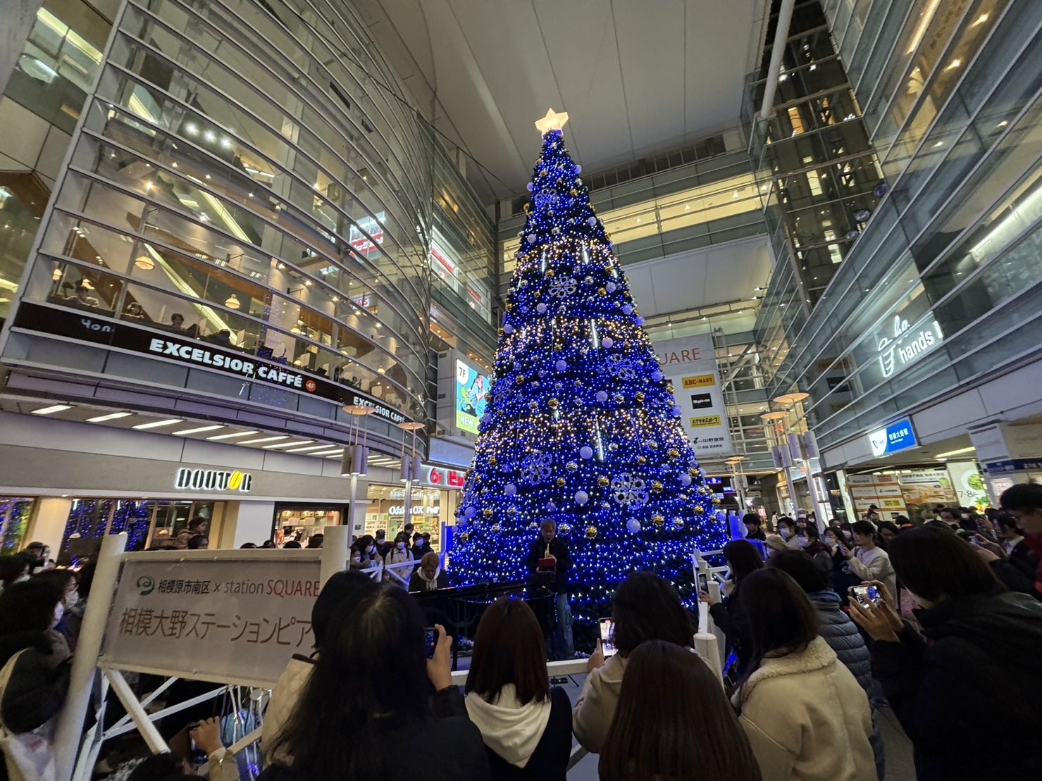 【相模原市南区】相模大野のクリスマスの風物詩、グランドピアノがクリスマスツリー前に登場