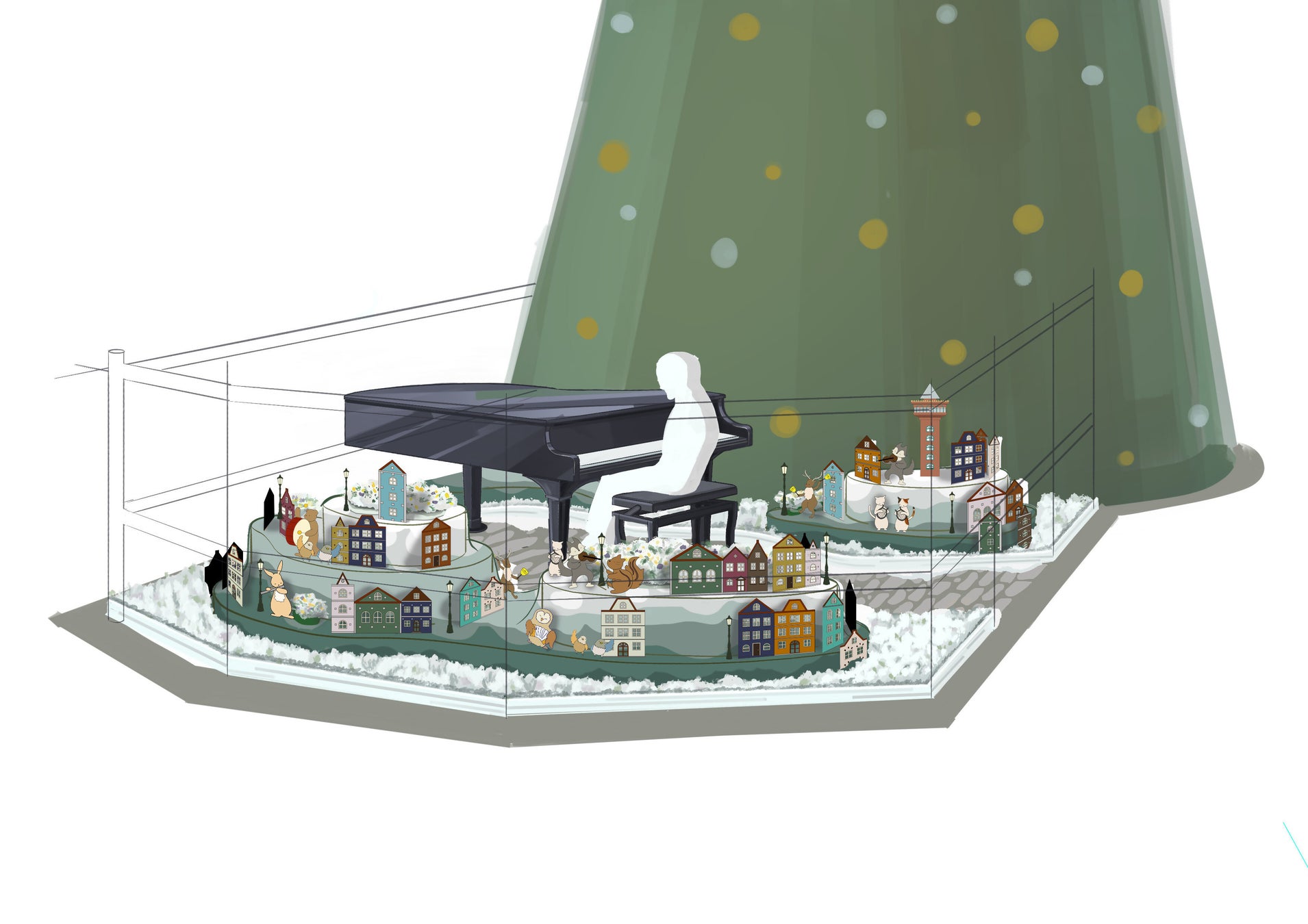 相模大野ステーションスクエアに設置されたクリスマスツリーの前に、グランドピアノが登場。ピアノの周りには、南区内にある女子美術大学の学生が「まちと奏でる明るい未来」をコンセプトに装飾を施し、相模大野ならではの特別な空間を演出します。