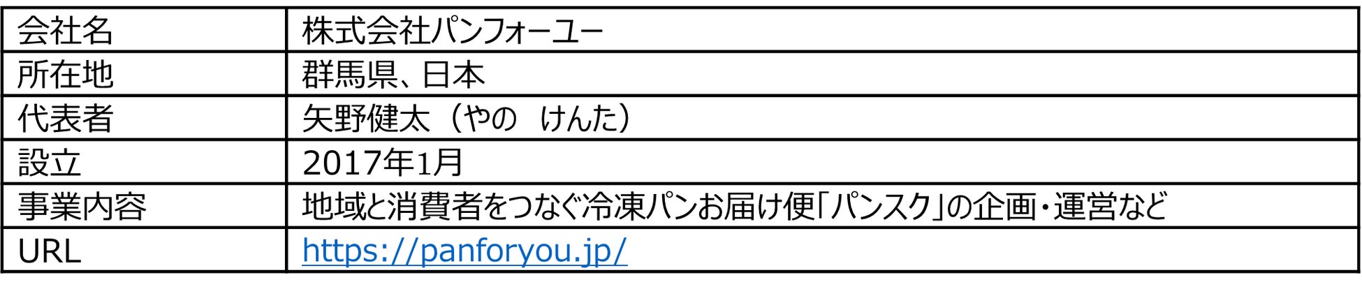 地域のパン屋さんが抱える運営や販路拡大などのあらゆる課題を、独自の冷凍技術とITによって解決するスタートアップ企業です。「新しいパン経済圏を作り、地域経済に貢献する」をミッションに、独自のパン冷凍技術・パン屋さん向けSaaSプロダクト・販路拡大戦略で、全国の消費者とパン屋さんをつなぎ、パンを「作る人」「売る人」「食べる人」三方良しのプラットフォームサービスを提供しています。