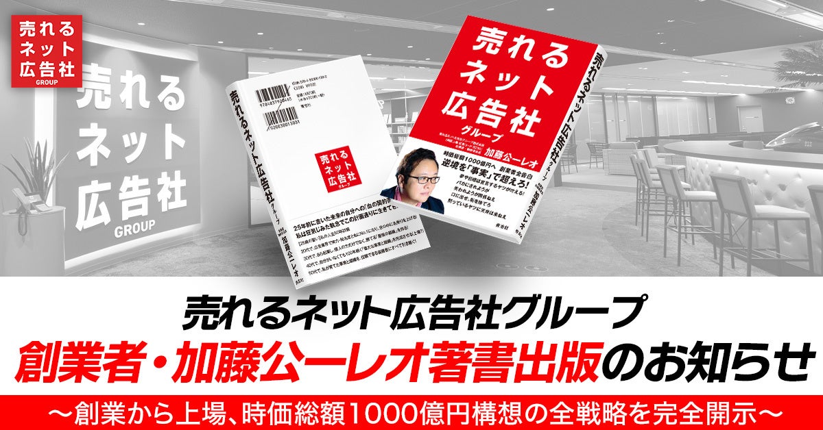 売れるネット広告社グループ株式会社(本社:福岡県福岡市、代表取締役社長 CEO:植木原宗平、東証グロース市場:証券コード9235、以下「売れるネット広告社グループ」)は、創業者であり会長・加藤公一レオが、自身の半生および当社の成長戦略をまとめた著書『時価総額1000億円へ 売れるネット広告社グループ 加藤公一レオ 創業者 全告白』を出版することをお知らせいたします。