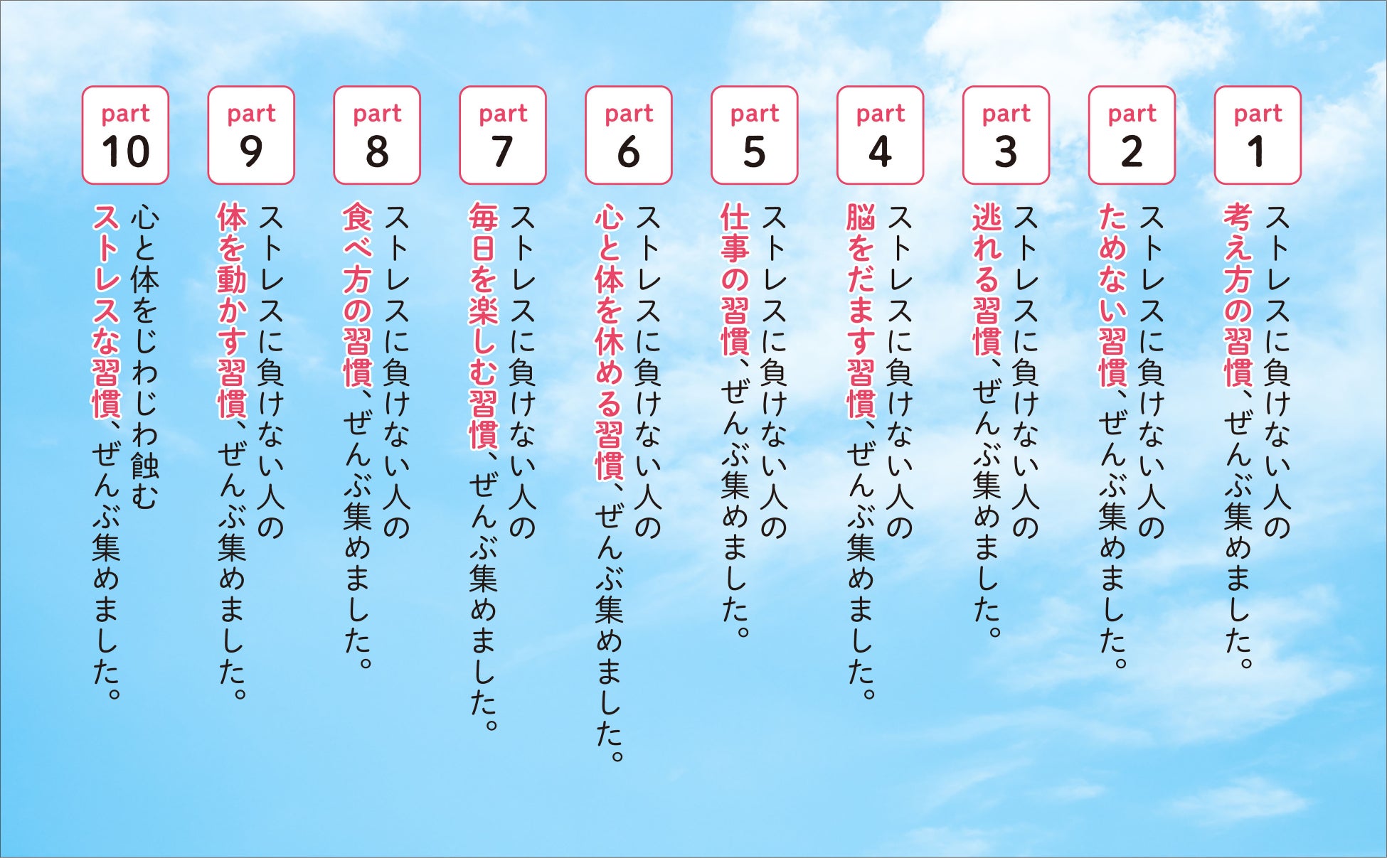 本書は、ストレスに負けない人の習慣を、認知療法、脳科学、自律神経、最新栄養学、東洋医学などの観点から、多角的に紹介します。