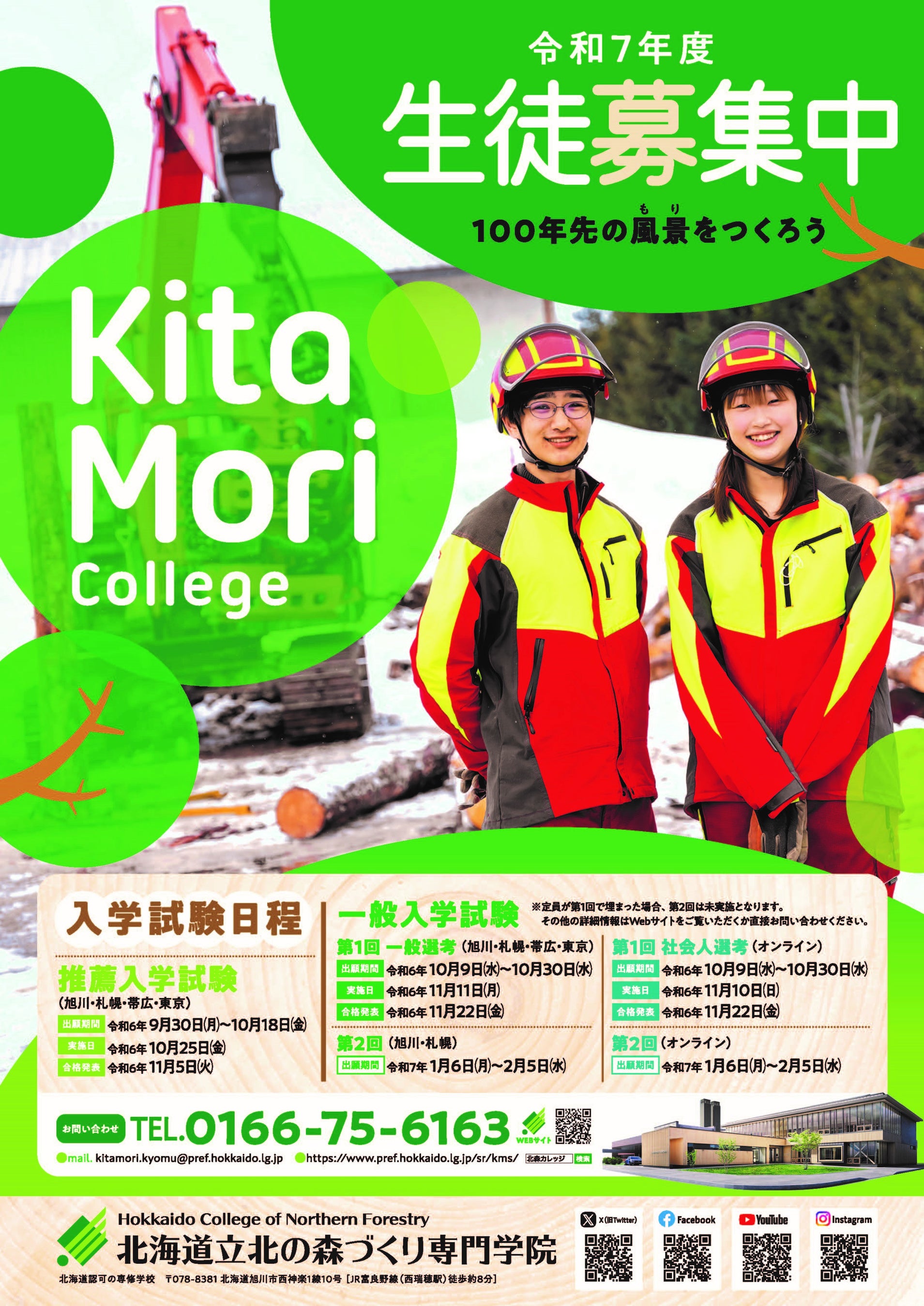 北海道で唯一の林業専門学校、北海道立北の森づくり専門学院(略称:北森カレッジ)では