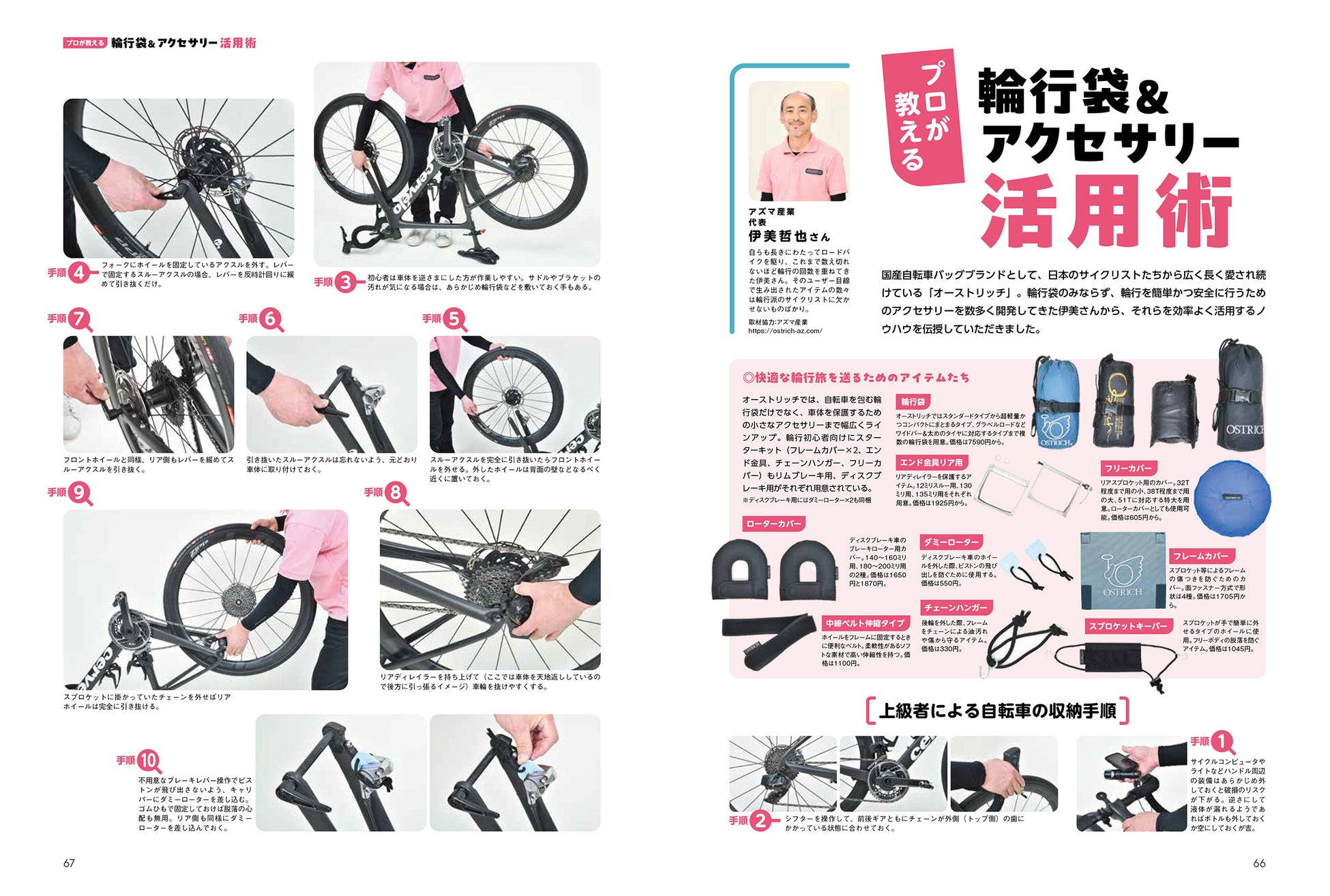 本誌では、愛車と自転車旅に出かけるためのノウハウや、おすすめのサイクリングルート、旅で活躍する自転車やアイテムなどを幅広く紹介。